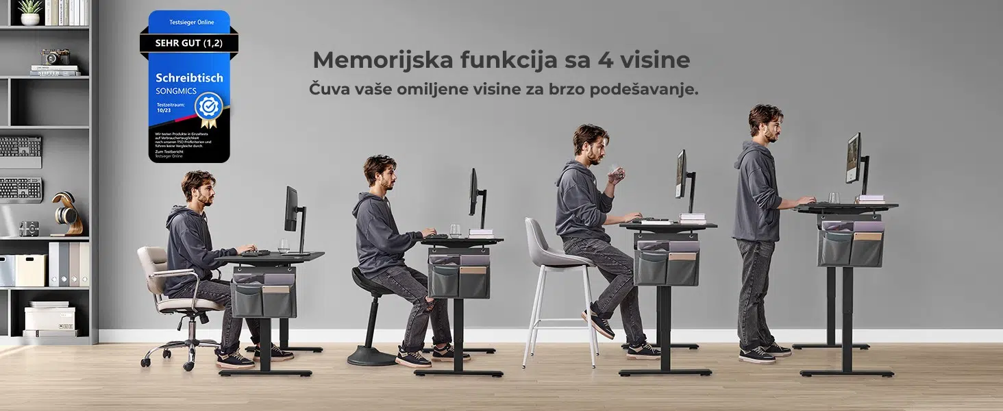 Jednostavno podesite i sačuvajte svoje omiljene visine stola, kako biste ih brzo aktivirali svaki put kada promenite položaj između sedenja i stajanja.