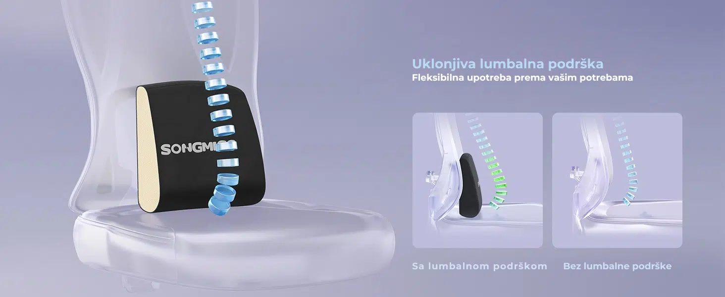 Dizajnirana da prati prirodnu krivinu kičme, ova gejmerska stolica ima lumbalnu podršku podesivu po visini i dubini, koja se prilagođava telu, ravnomerno raspoređuje pritisak i pruža dugotrajnu udobnost.