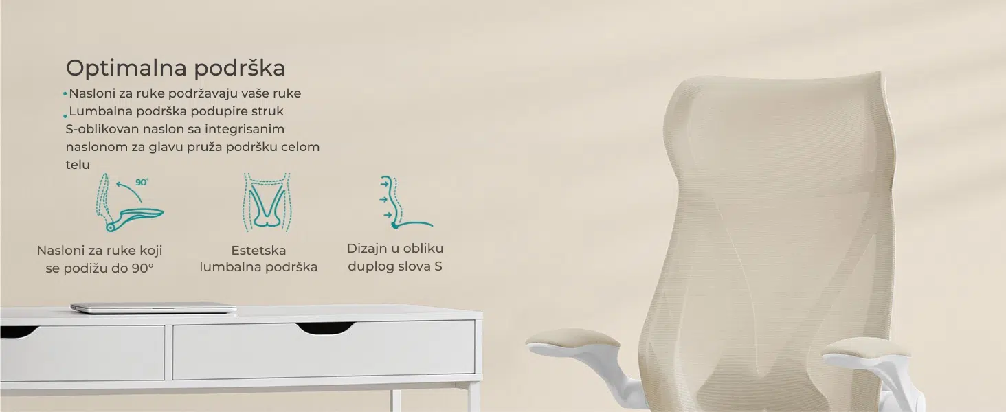 Spoj estetike i funkcionalnosti – jedinstven dizajn ne samo da doprinosi elegantnom izgledu stolice, već i pruža udobnu podršku struku.