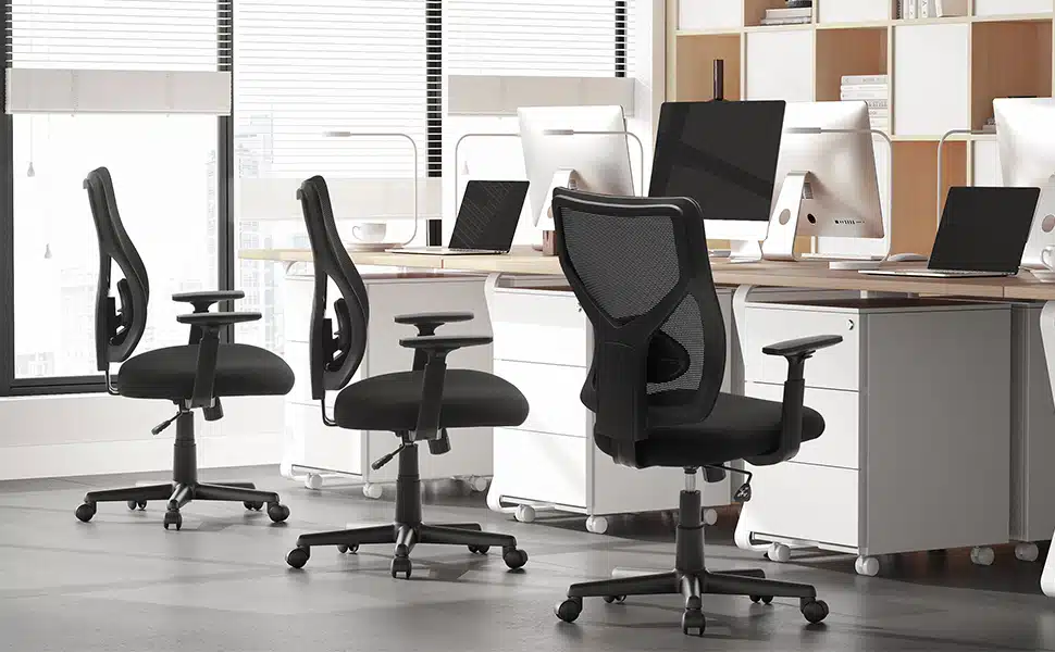 Podesiva visina, nasloni za ruke i lumbalna podrška prilagođavaju se različitim položajima rada i potrebama korisnika, dok funkcija nagiba omogućava potpuno opuštanje.