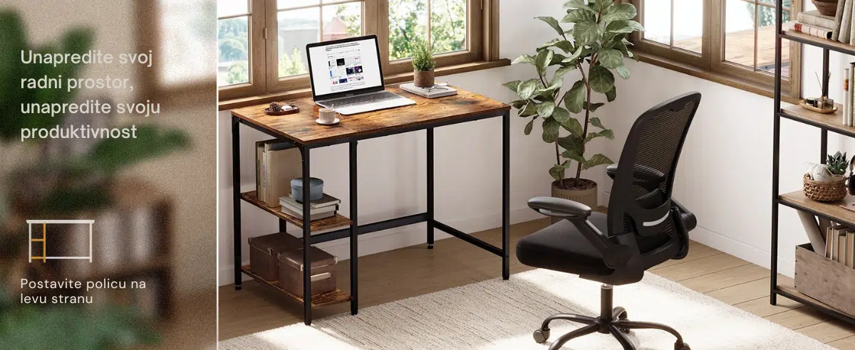 Prostrana radna površina i dve dodatne police omogućavaju brz pristup svim dokumentima i stvarima. Gornju policu možete ukloniti kako biste napravili mesto za kućište računara.
