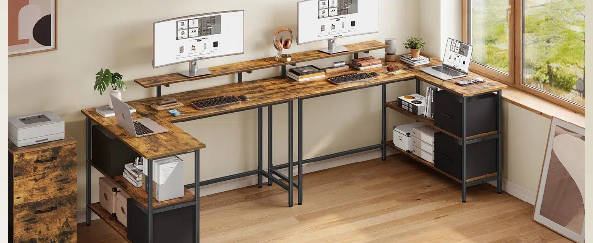 Ovaj ugaoni sto dimenzija 105 x 115 x 89,5 cm ima reverzibilan dizajn, što znači da fioke možete montirati na levu ili desnu stranu – savršeno se uklapa u svaki ugao vaše kancelarije, sobe ili dnevnog boravka.