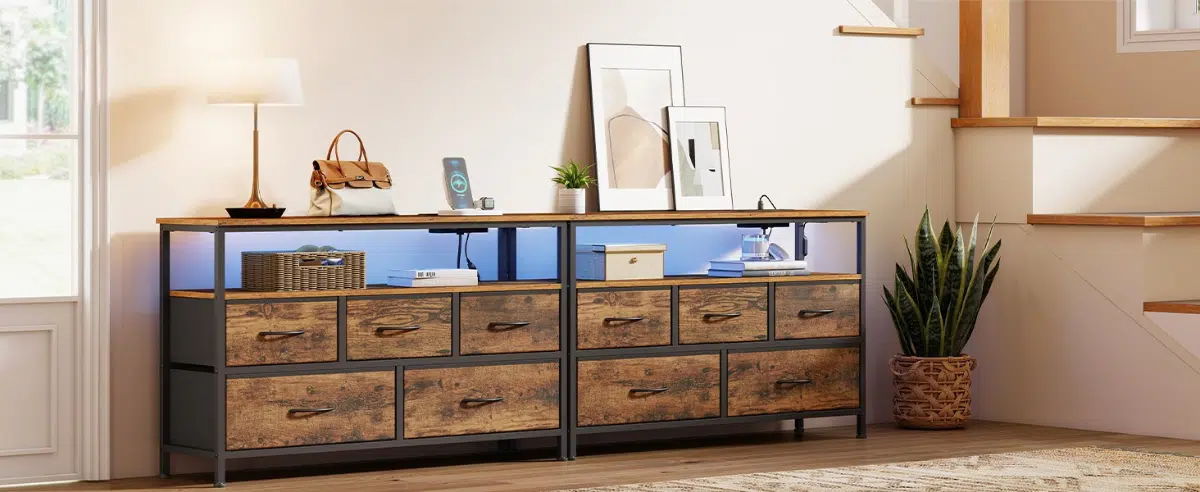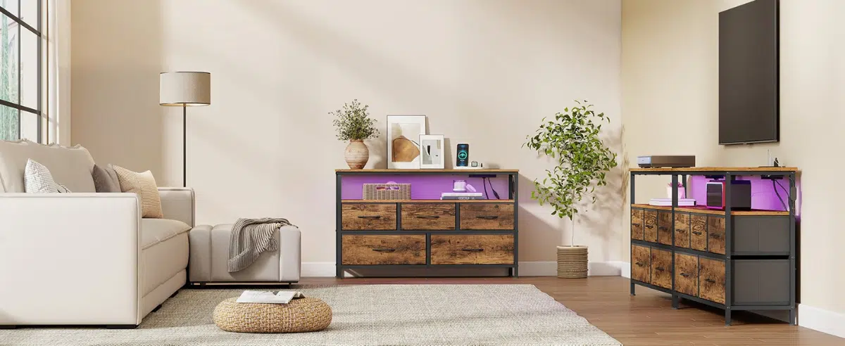 Ugrađene utičnice i portovi – komoda je opremljena produžnim kablom sa 2 AC utičnice, 1 USB-A i 1 USB-C portom, što omogućava jednostavno punjenje uređaja i veću praktičnost u svakodnevnoj upotrebi.