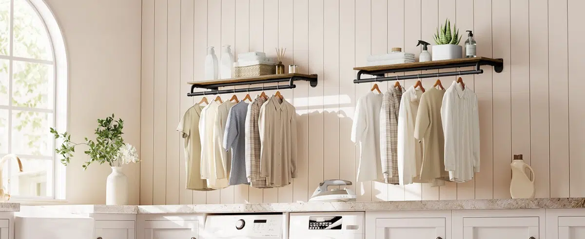 2-u-1 vešalica – kombinacija police i šipke za odeću omogućava praktično odlaganje i kačenje stvari na jednom mestu, čineći organizaciju jednostavnijom.
