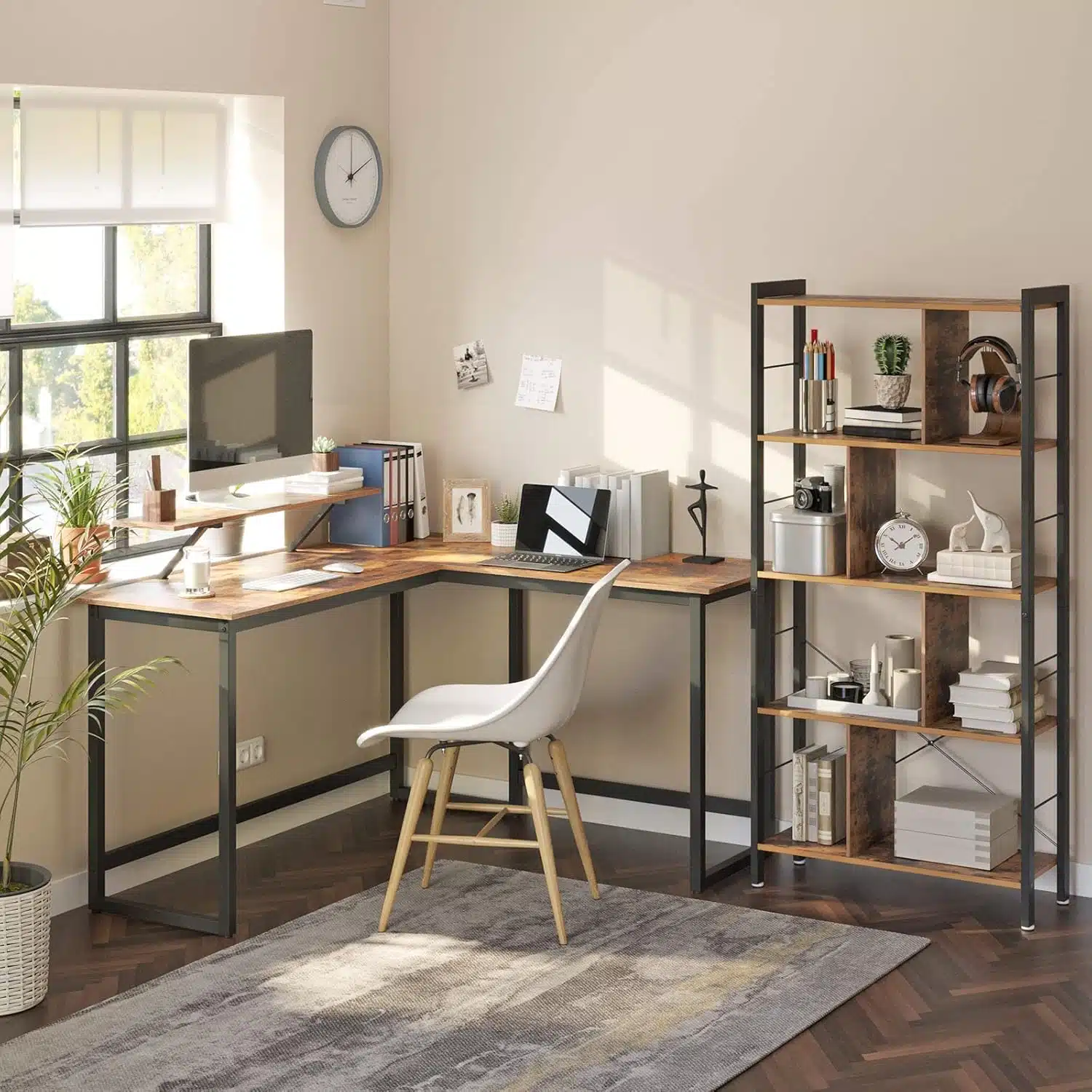 Ovaj stilski radni sto je oblikovan kao L i može se uklopiti u svaki ugao prostorije radi uštede prostora. Dodatno, opremljen je držačem za monitor dimenzija 20 x 90 cm koji se može instalirati na oba kraja radnog stola.