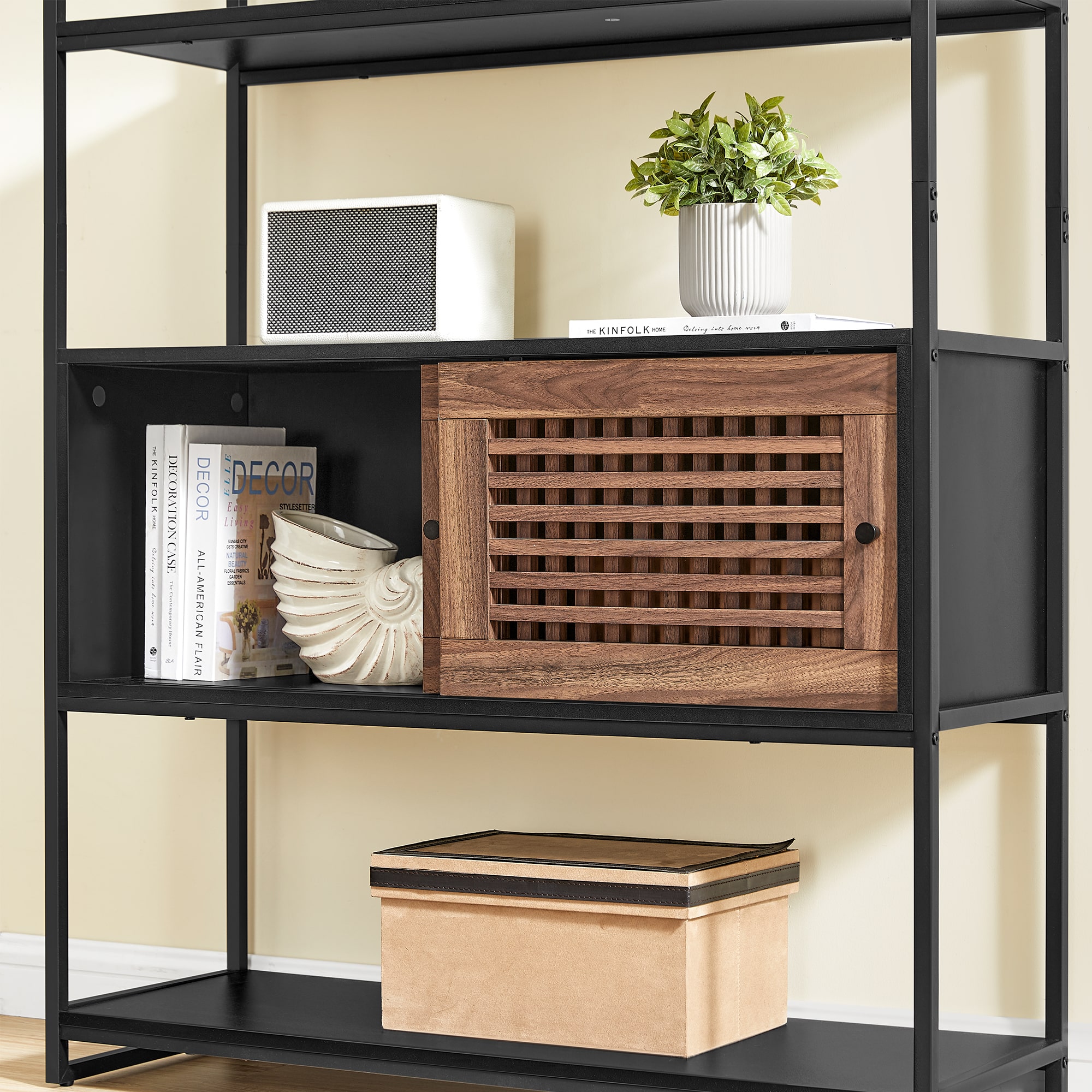 Bilo da želite da izložite umetničku kolekciju u dnevnoj sobi, organizujete knjige u radnoj sobi ili odložite posteljinu u spavaćoj sobi, ova polica sa otvorenim i zatvorenim skladišnim prostorom je savršen izbor.