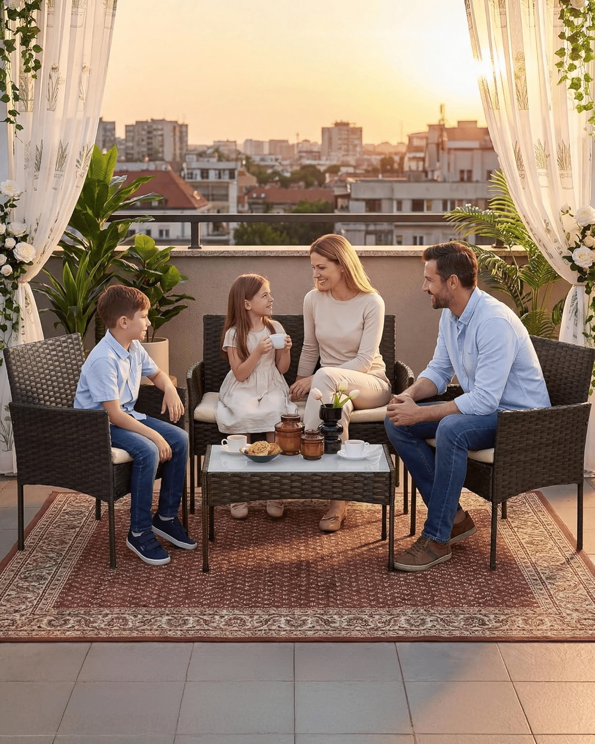 Jednostavan i elegantan dizajn ovog baštenskog seta za balkon i terasu donosi moderan izgled svakom spoljašnjem prostoru. Stabilne metalne noge naglašavaju savremeni stil, dok površina od PE ratana dodaje toplinu i prirodan izgled, stvarajući prijatnu atmosferu u vašem dvorištu tokom letnjih dana.