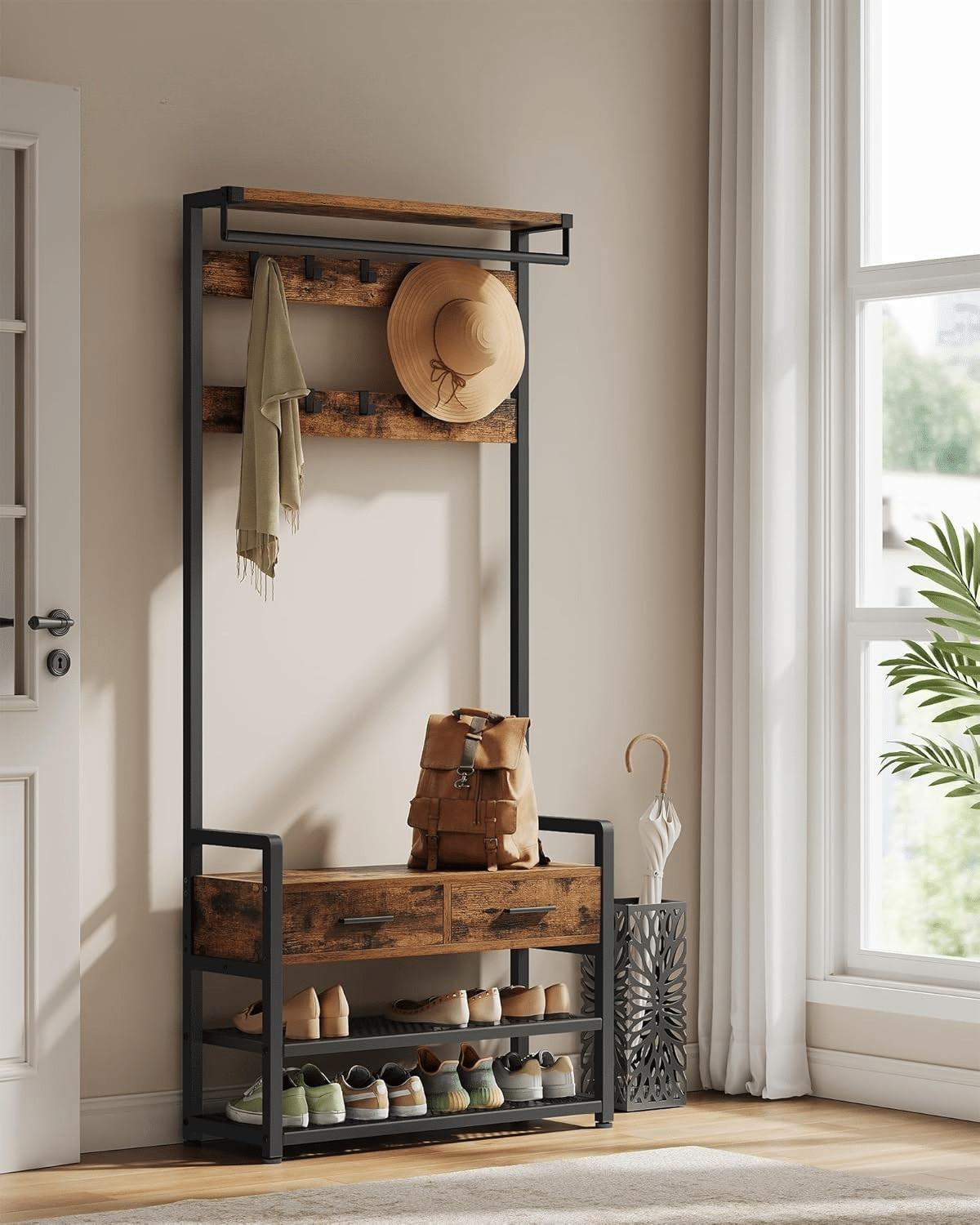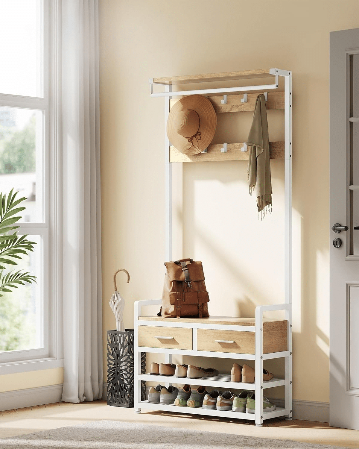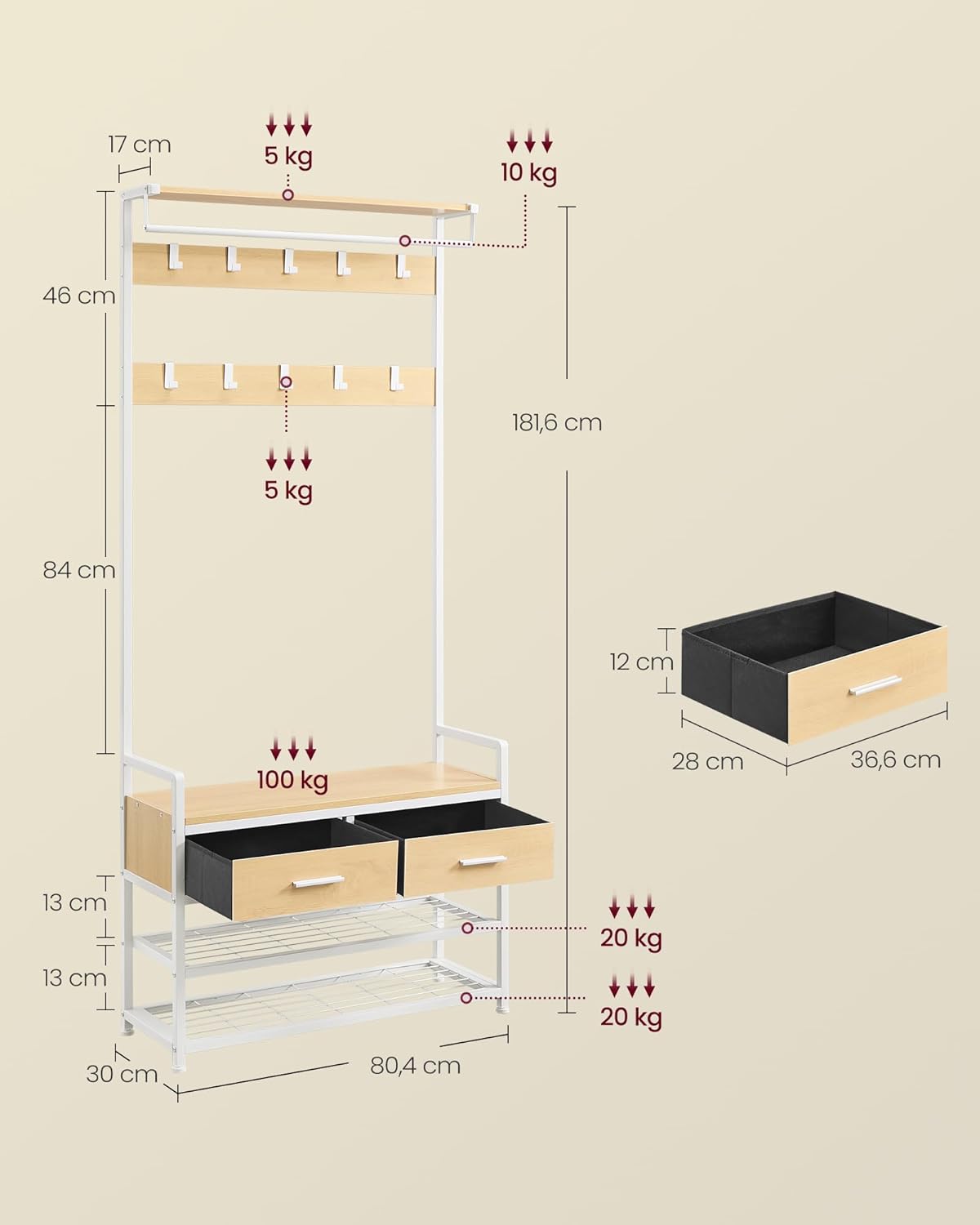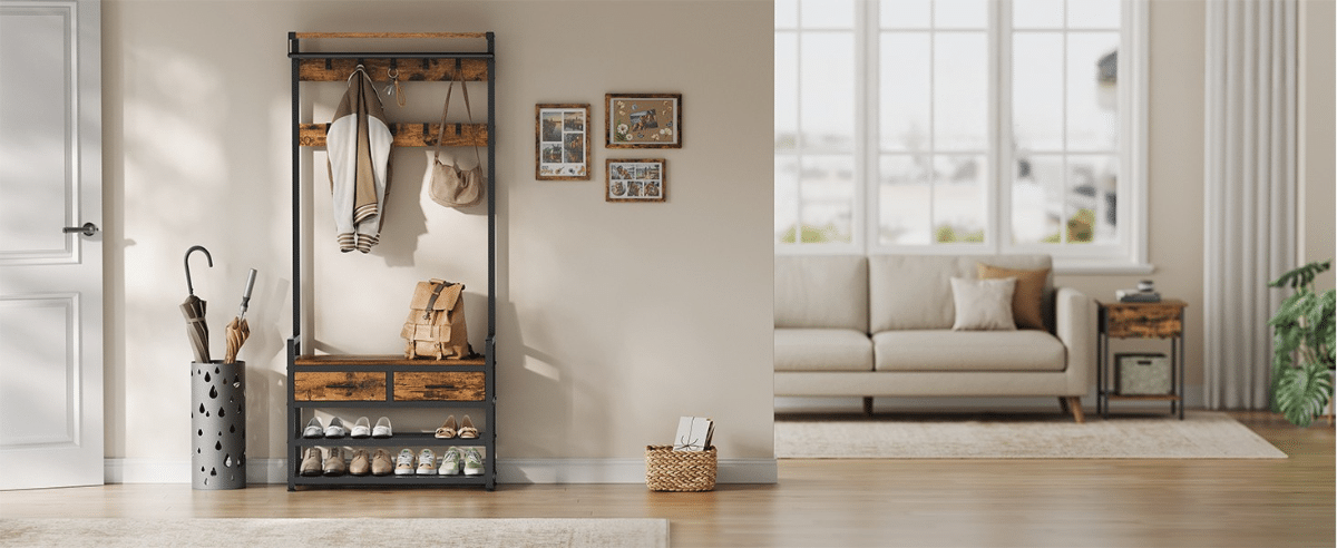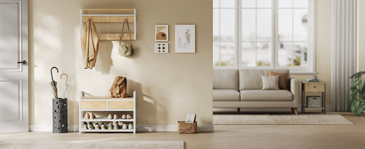 Dovoljno prostora – opremljen sa 10 uklonjivih kuka za jakne, kape, šalove i torbe, kao i 2 donje police koje mogu primiti do 8 pari cipela.