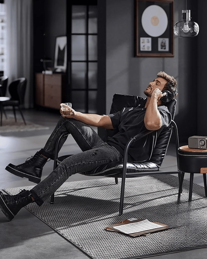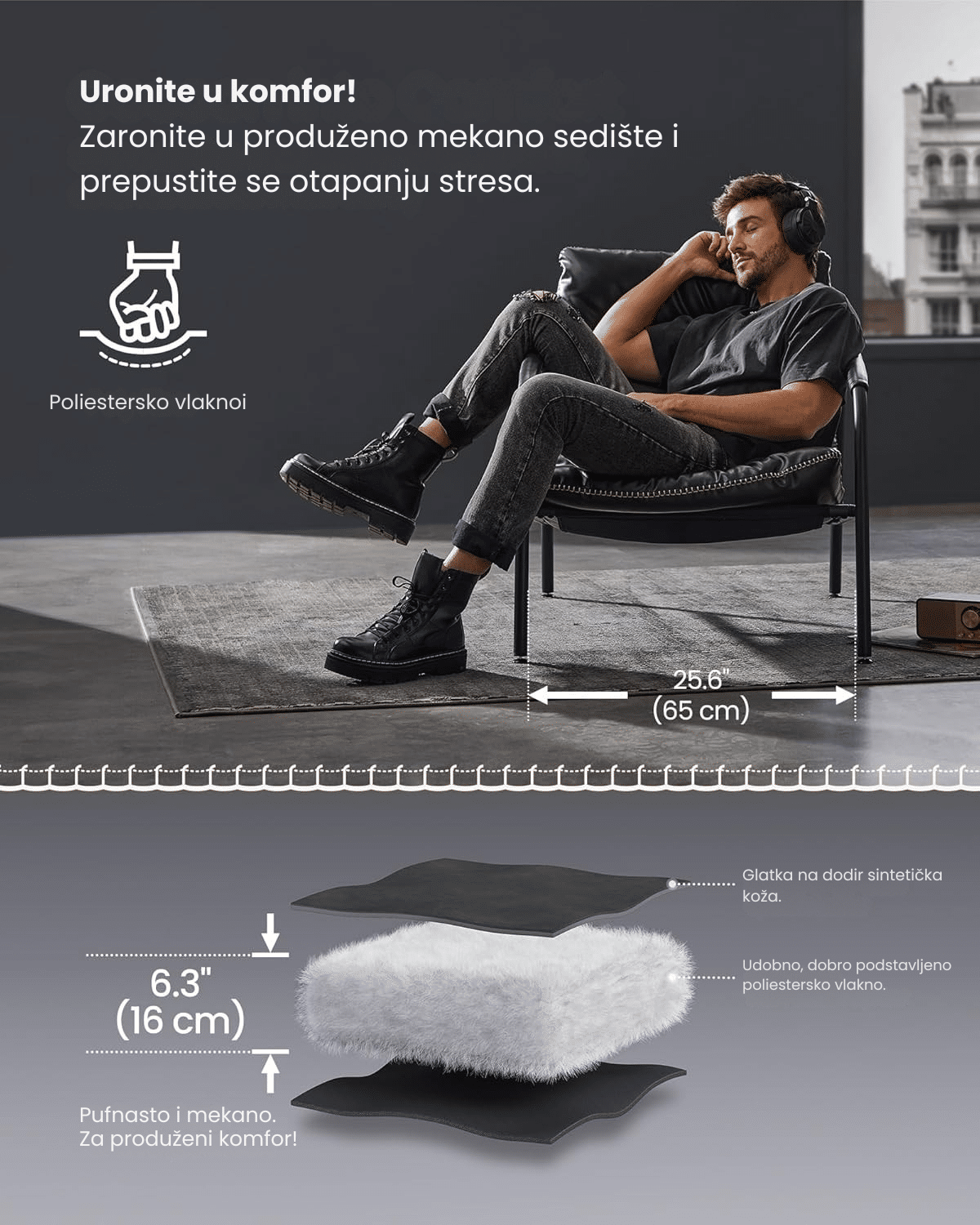 [Pouzdani zagrljaj] Nježno nagnuta čelična konstrukcija ovog fotelja za čitanje pruža stabilno i čvrsto sedište. Može da izdrži do 136 kg, i poziva vas da se opustite sa sigurnošću da ćete biti dobro podržani.
