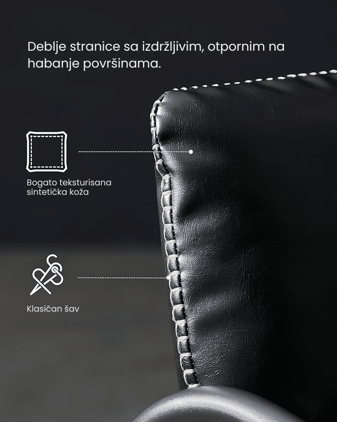 [Stil koji govori] Ova akcentna fotelja deo je kolekcije koja kombinuje bogato teksturisanu sintetičku kožu sa sofisticiranim šavom. Osećaj poštovanja prema majstorstvu pomaže vam da stvorite dom koji mnogo govori o stilu.