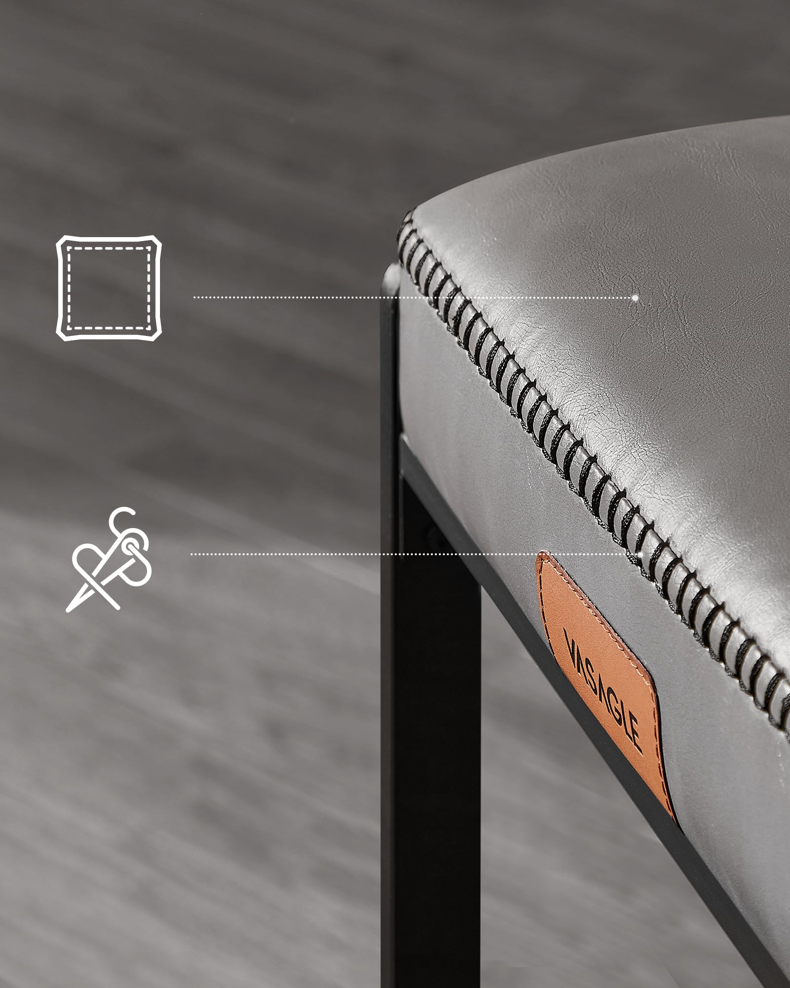 Presvlaka od vodootporne veštačke kože lako se čisti, dok mat crne čelične noge odolevaju svakodnevnim ogrebotinama i zadržavaju sofisticirani izgled.
