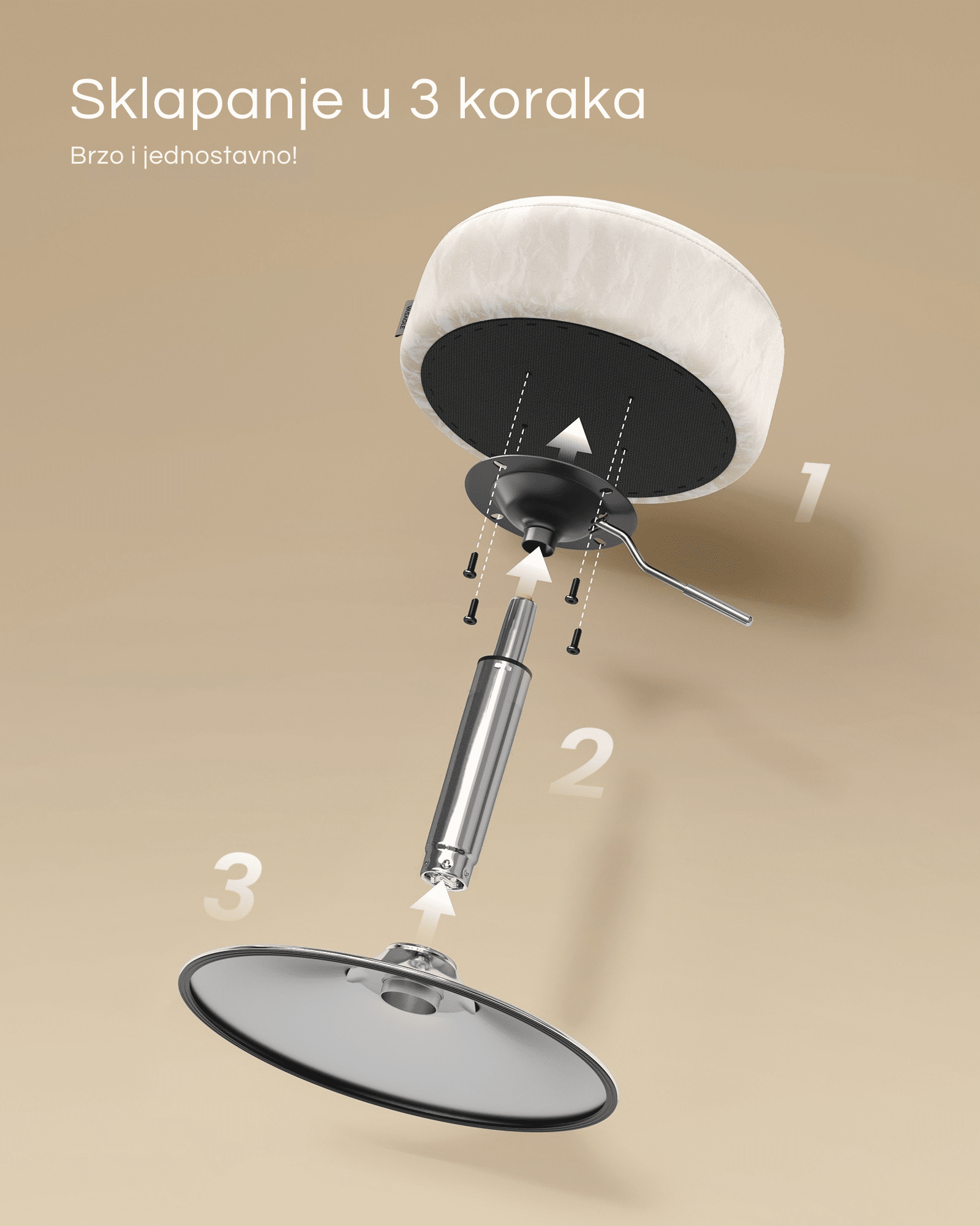 Brza i laka montaža – Jasna uputstva i označeni delovi omogućavaju da ovu podesivu rotirajuću stolicu sastavite u samo 3 jednostavna koraka.