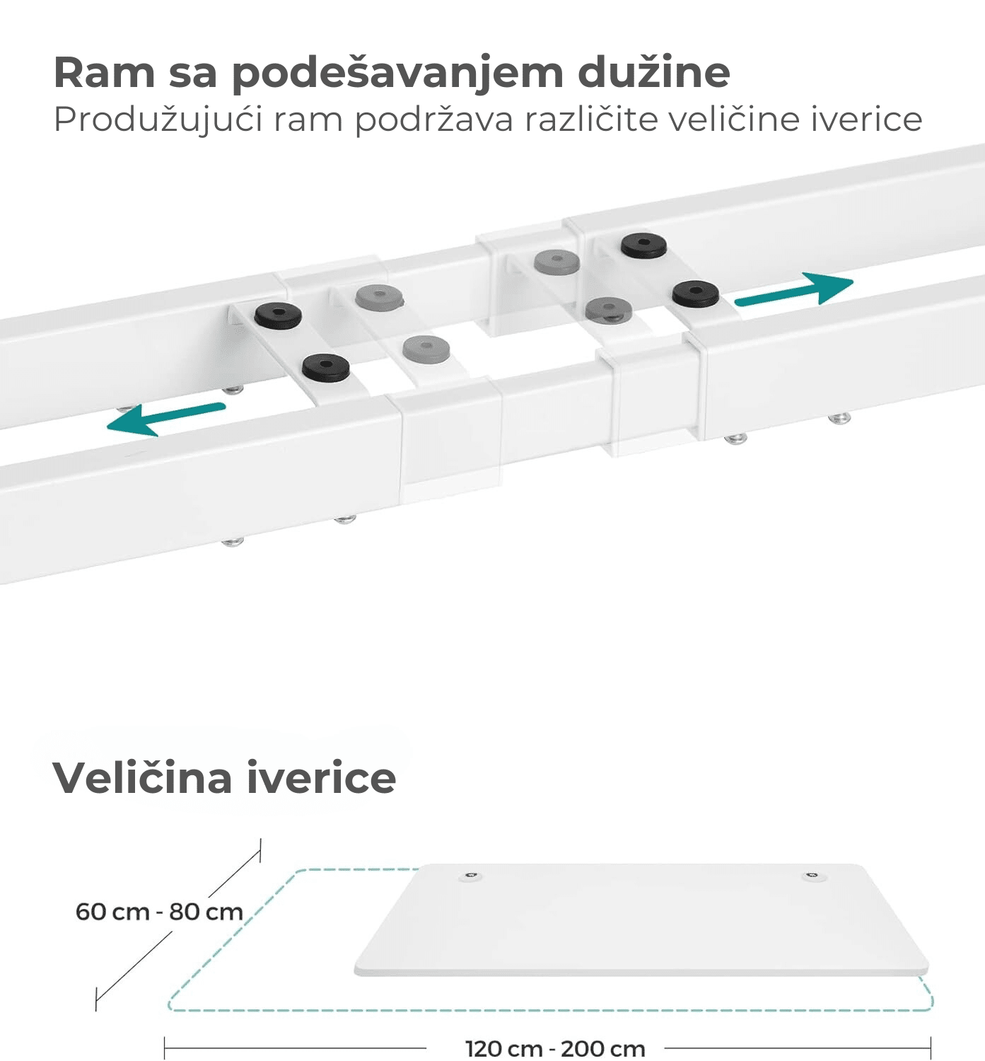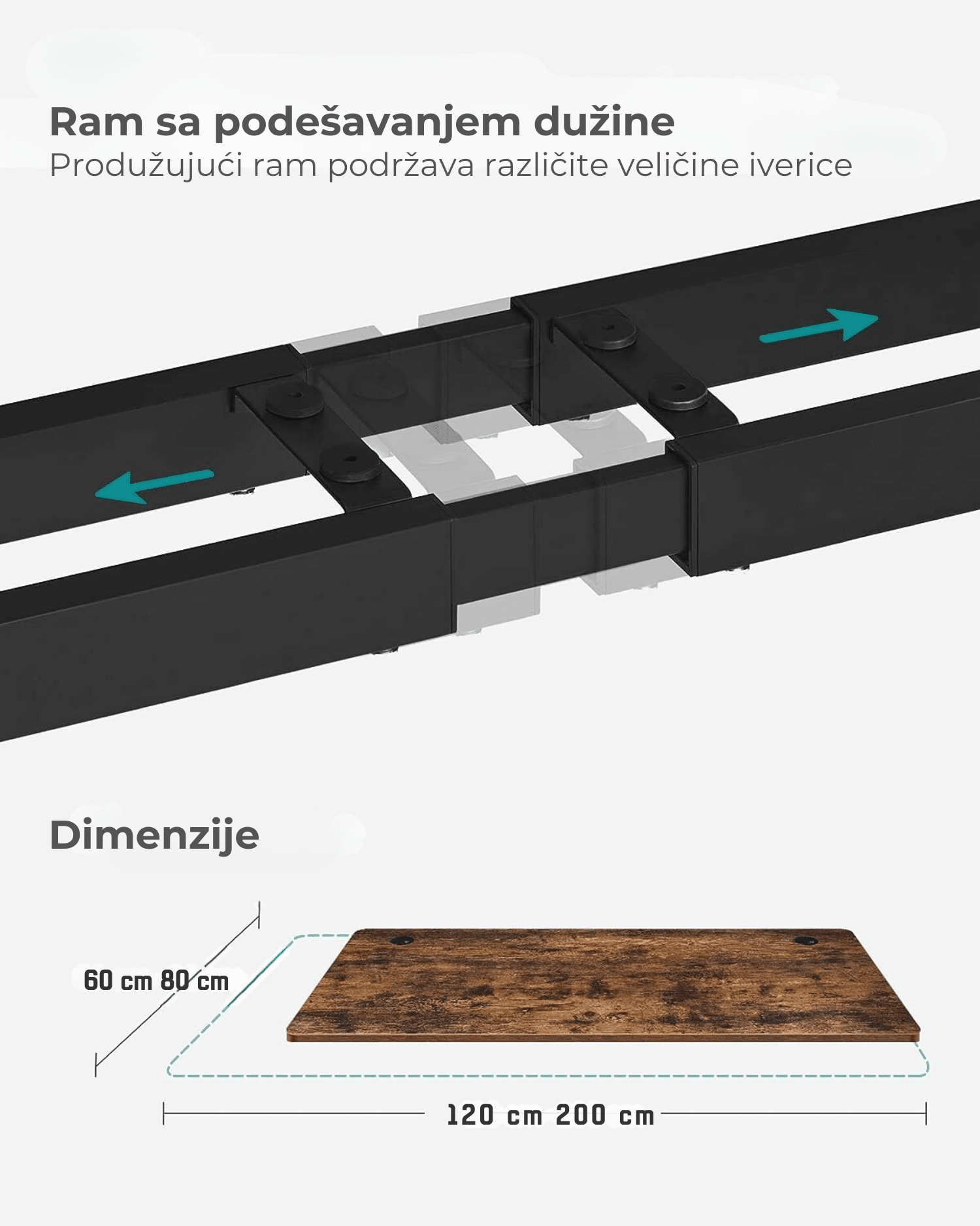 Dimenzije električnog stola: 60 x (107,5-175) x (69-115) cm (D*Š*V)