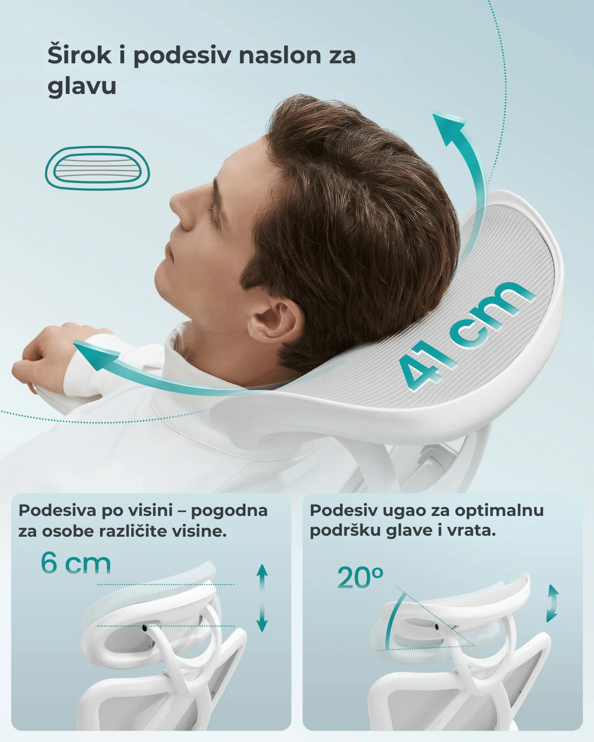 naslon za glavu širine 41 cm može se rotirati 20° i podesiti po visini 6 cm