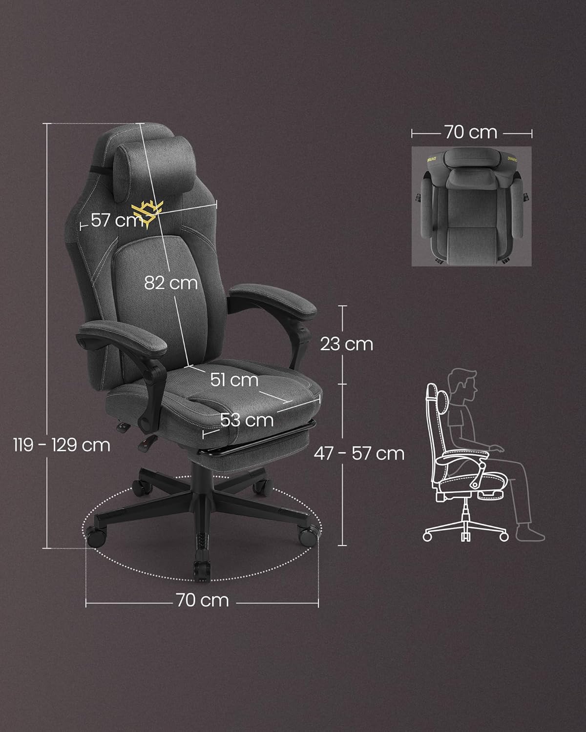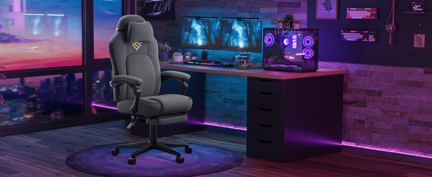 Fleksibilnost je ključ – podesite naslon između 90° i 135°, izvucite oslonac za noge i prilagodite visinu sedišta u rasponu od 10 cm kako biste pronašli idealan položaj. Tihi PU točkići omogućavaju nesmetano kretanje bez ometanja, čak i tokom intenzivnog gejminga.