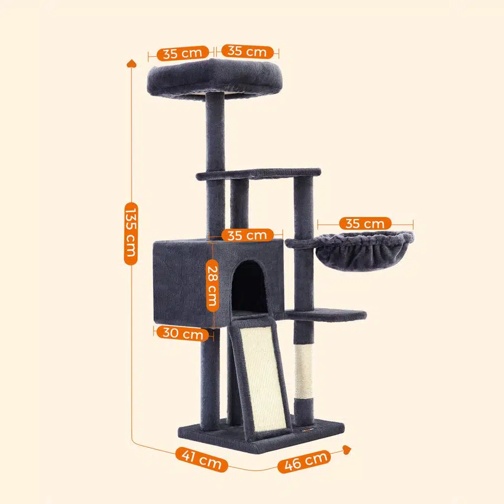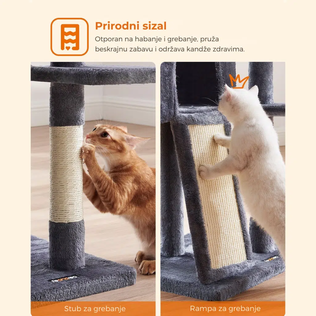 Penjanje, spavanje, posmatranje… Ova višespratna grebalica visine 135 cm nudi mačkama mnogo mogućnosti za igru i odmor. Dizajn sa više nivoa olakšava penjanje i mlađim mačićima i starijim mačkama.