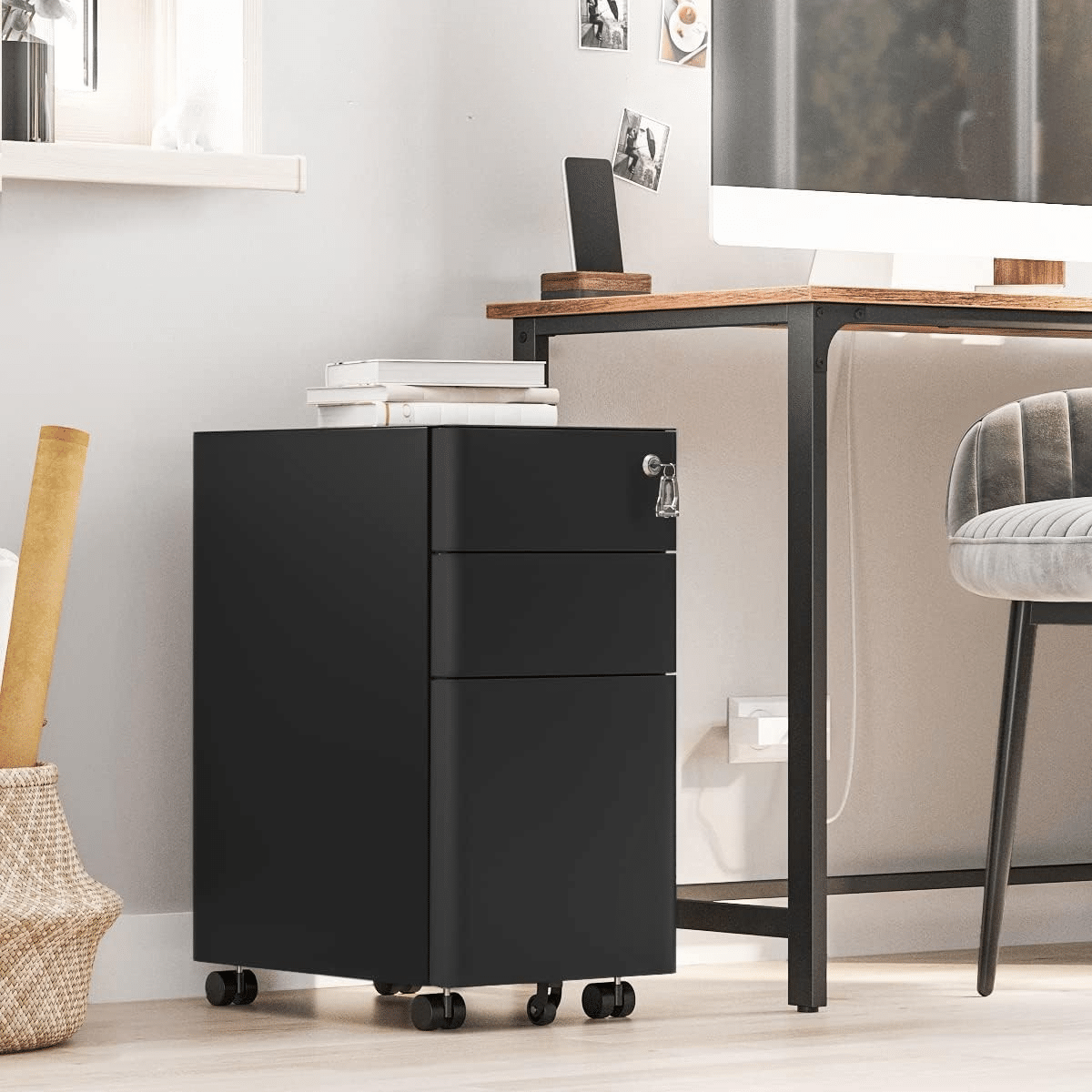 Nešto dobro za Vaš radni prostor: Umorni ste od pretraživanja kroz gomile datoteka za dokumentom koji Vam treba? Ovaj kabinet sa 3 fioke i 1 fiokom za kancelarijski materijal eliminiše haos u Vašoj kancelariji! Takođe, možete bezbedno da skladištite važne dokumente u kancelariji iza brave.