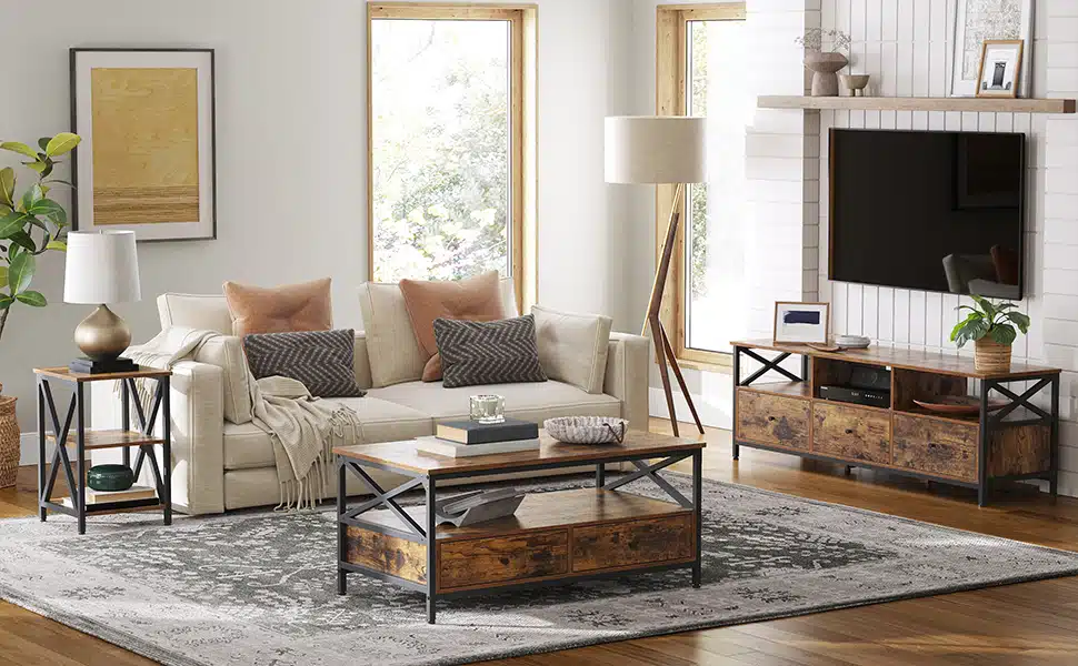 Ovaj klub sto nudi odličnu organizaciju prostora – dve otvorene police su idealne za knjige, časopise i dekoraciju, dok dve fioke omogućavaju da sakrijete sitnice i održite uredan izgled prostora.