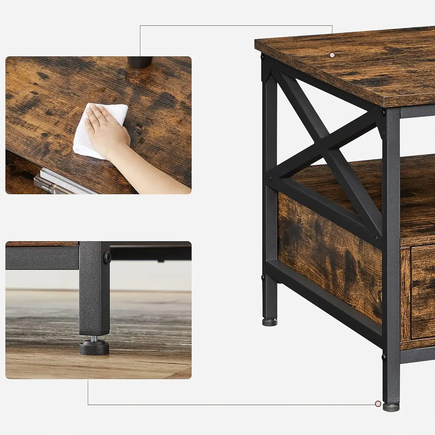 Čvrsta ploča od iverice u kombinaciji sa ojačanim čeličnim okvirom garantuje stabilnost i dug vek trajanja. Sto bez problema možete koristiti za svakodnevne aktivnosti – od kafe i druženja do odlaganja TV uređaja do 32 inča.
