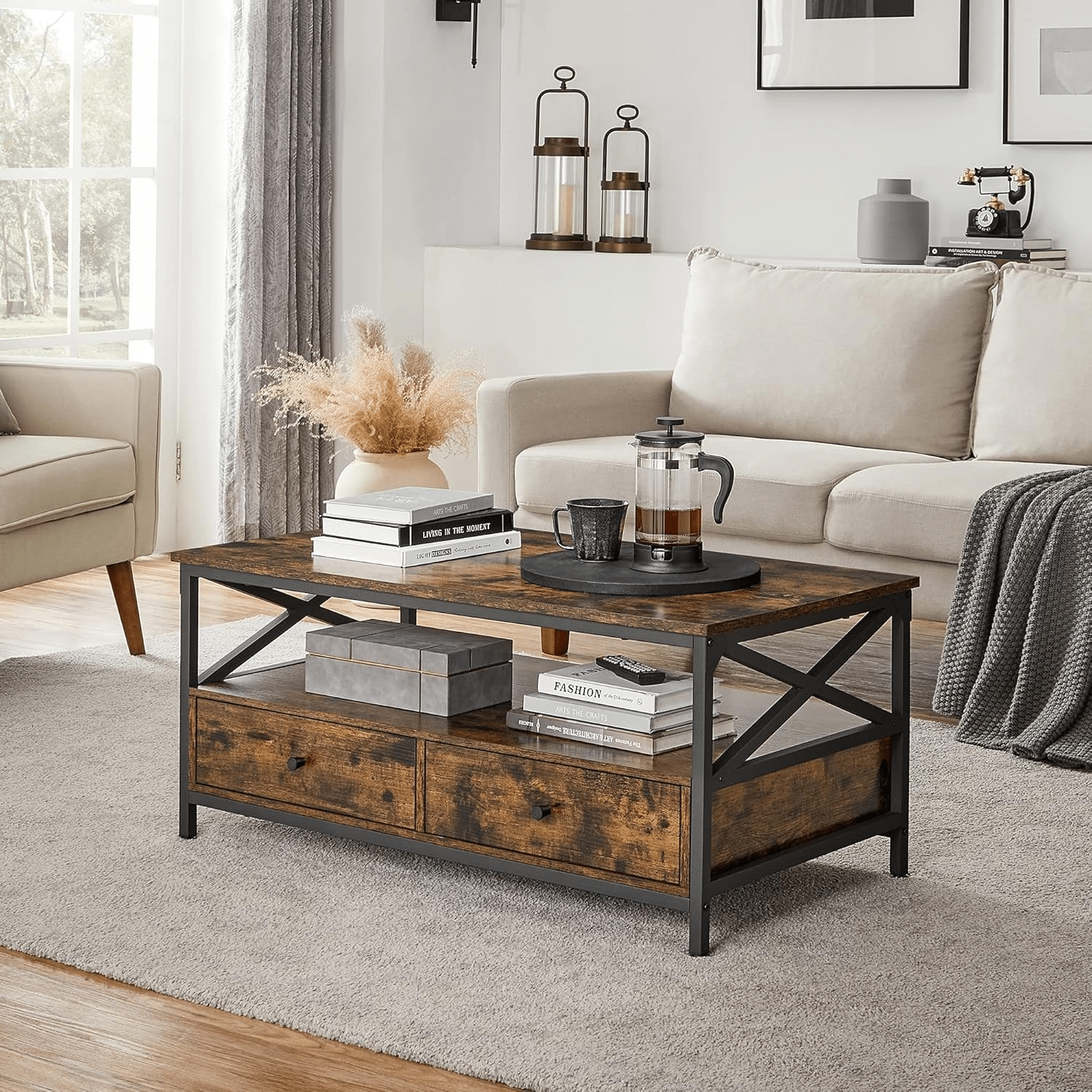 Kombinacija rustik braon ploče i mat crnog čeličnog okvira u X dizajnu daje ovom stolu poseban karakter. Savršen spoj modernog i industrijskog stila koji će se lako uklopiti u svaki dnevni boravak.