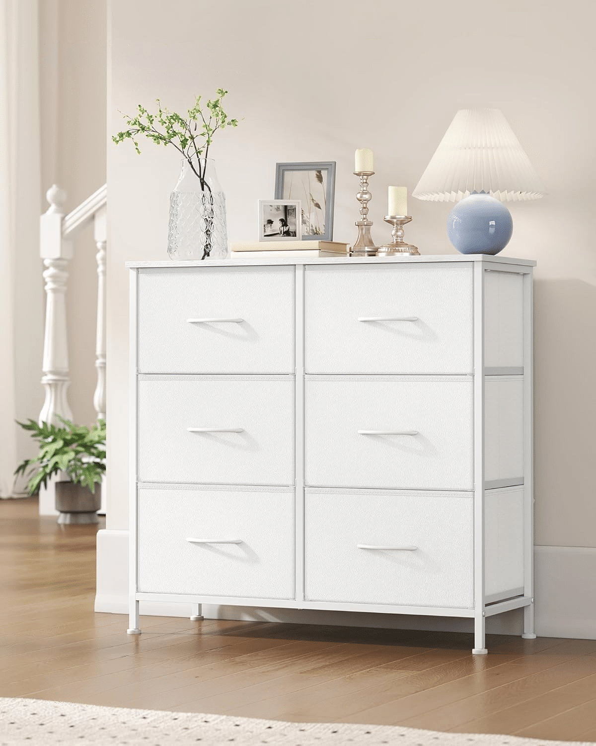 Veliki prostor za odlaganje – gornja površina je idealna za lampu, sat ili svakodnevne stvari, dok 6 fioka omogućava diskretno čuvanje odeće i ličnih predmeta, održavajući prostor urednim i organizovanim.
