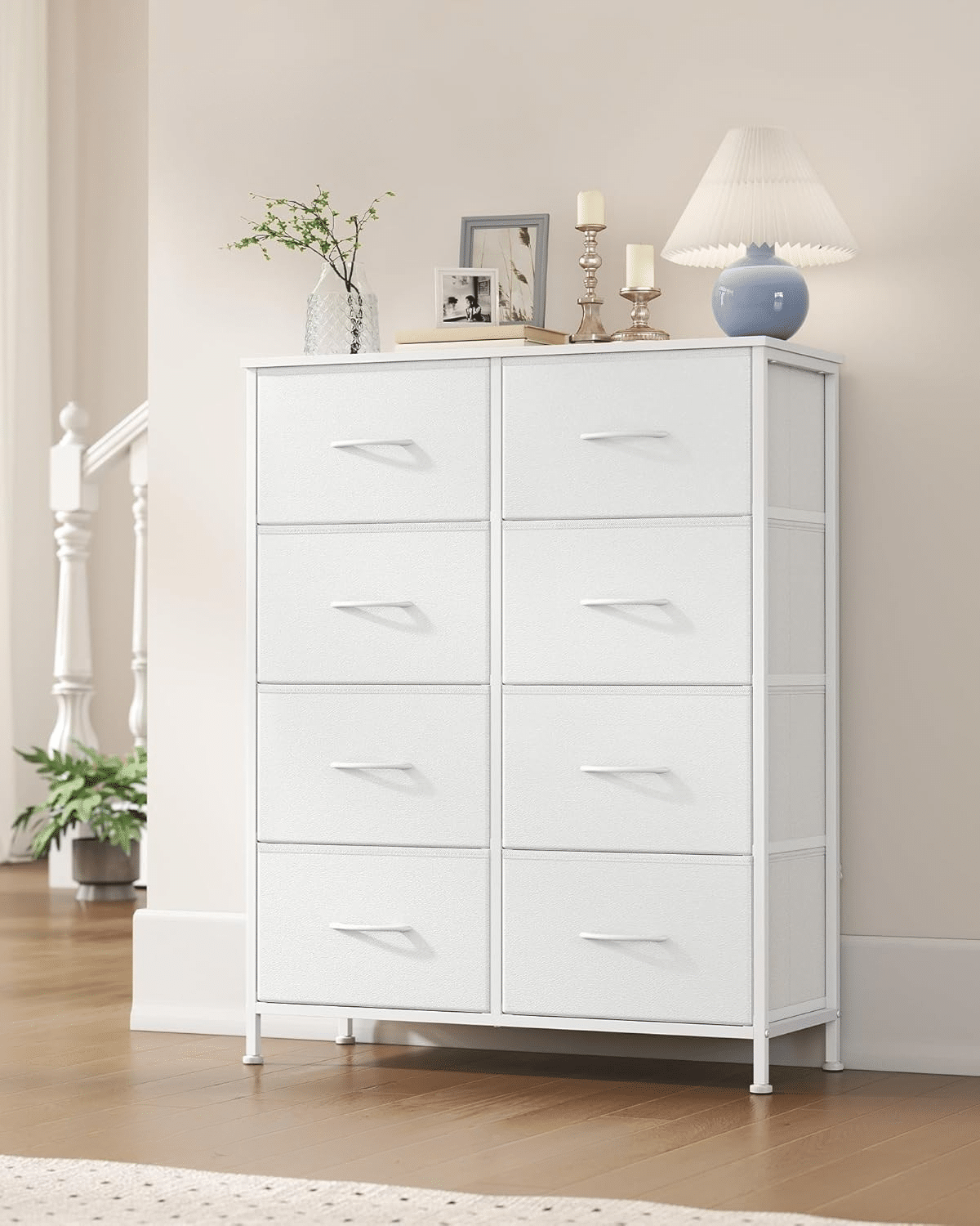 Veliki prostor za odlaganje – gornja površina je idealna za lampu, sat ili svakodnevne stvari, dok 8 fioka omogućava diskretno čuvanje odeće i ličnih predmeta, održavajući prostor urednim i bez nereda.
