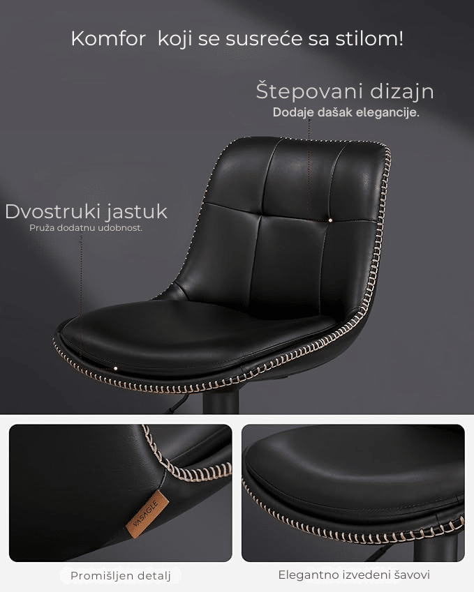 Zahvaljujući štepovanom dizajnu, ovaj komplet od dve barske stolice lako se uklapa u različite stilove enterijera i stvara opuštenu atmosferu – idealna za šank, kuhinjsko ostrvo, dnevnu sobu, balkon i još mnogo toga.