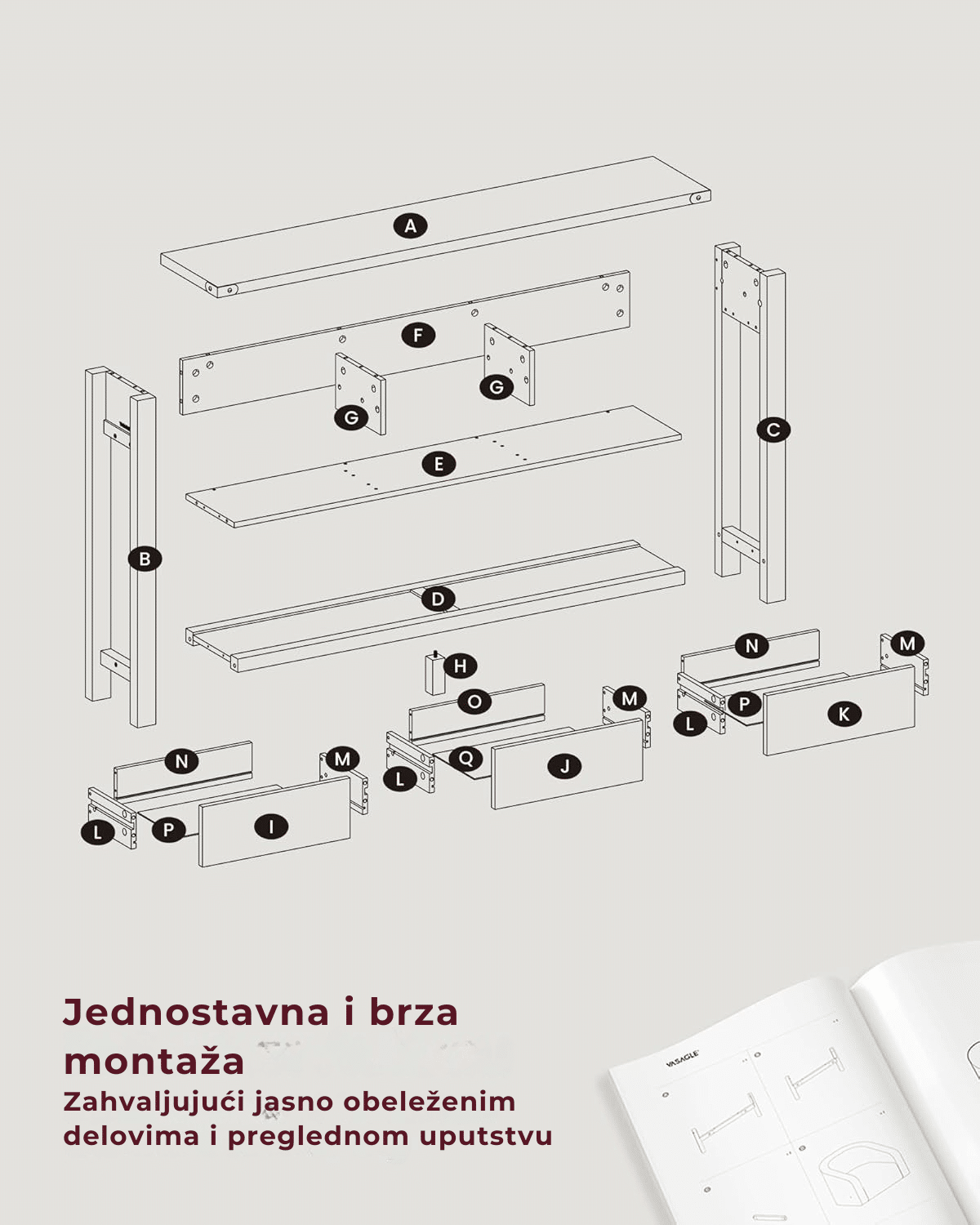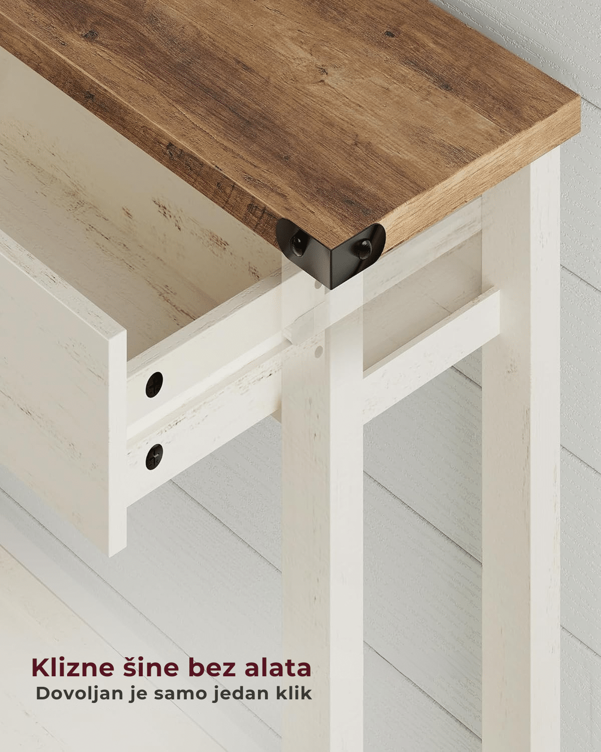 Jedna od dodatnih prednosti je jednostavna i brza montaža. Zahvaljujući inovativnim kliznim šinama koje se postavljaju bez upotrebe alata, dovoljno je samo nekoliko jednostavnih koraka da sto bude spreman za upotrebu. Nema komplikacija, nema dodatnog pribora – sve je osmišljeno da uštedi vaše vreme i trud.