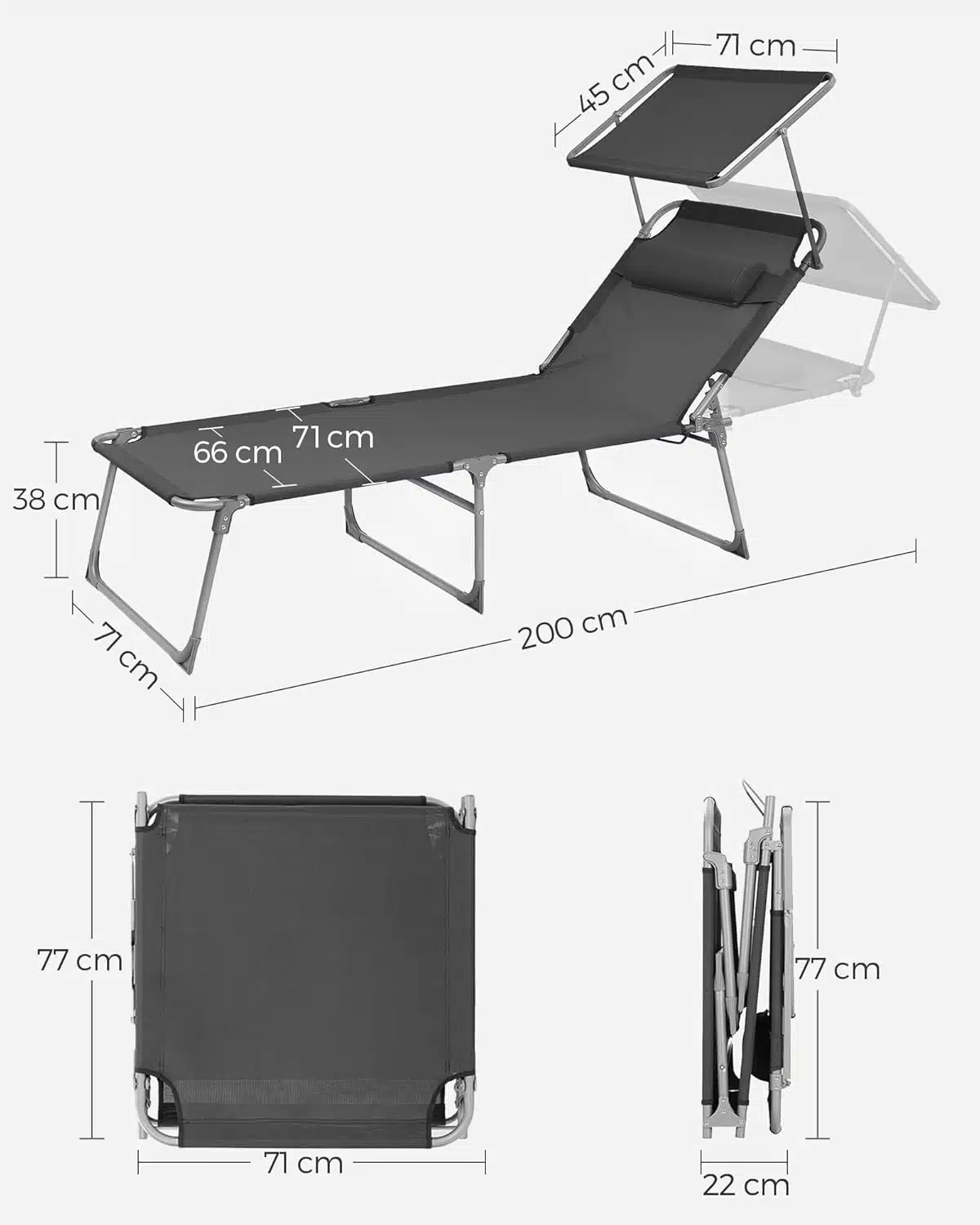 Specifikacija: Ležaljka za sunčanje sa suncobranom