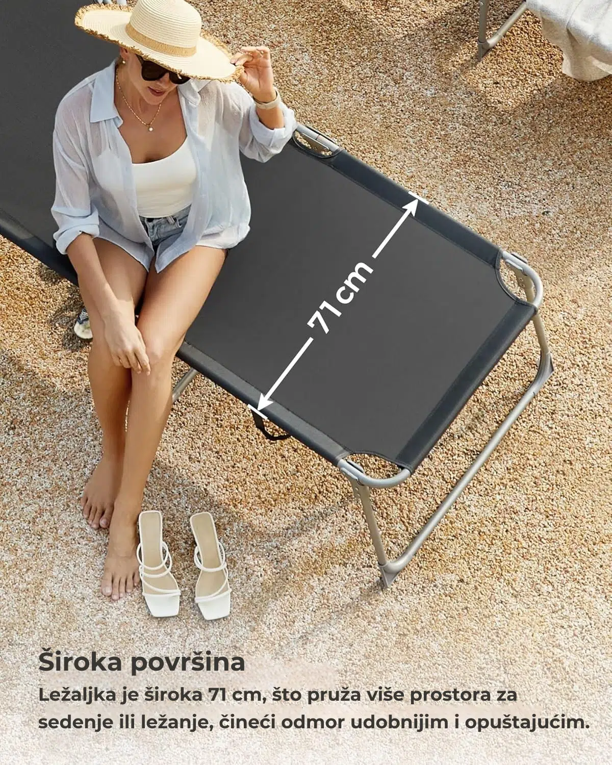 Vaš baštenski nameštaj često otežava radove u dvorištu? Ova sklopiva ležaljka to ne čini. Zahvaljujući praktičnom dizajnu i 2 ručke za nošenje, možete je lako premestiti gde god želite – pored bazena, na terasu ili čak na plažu.