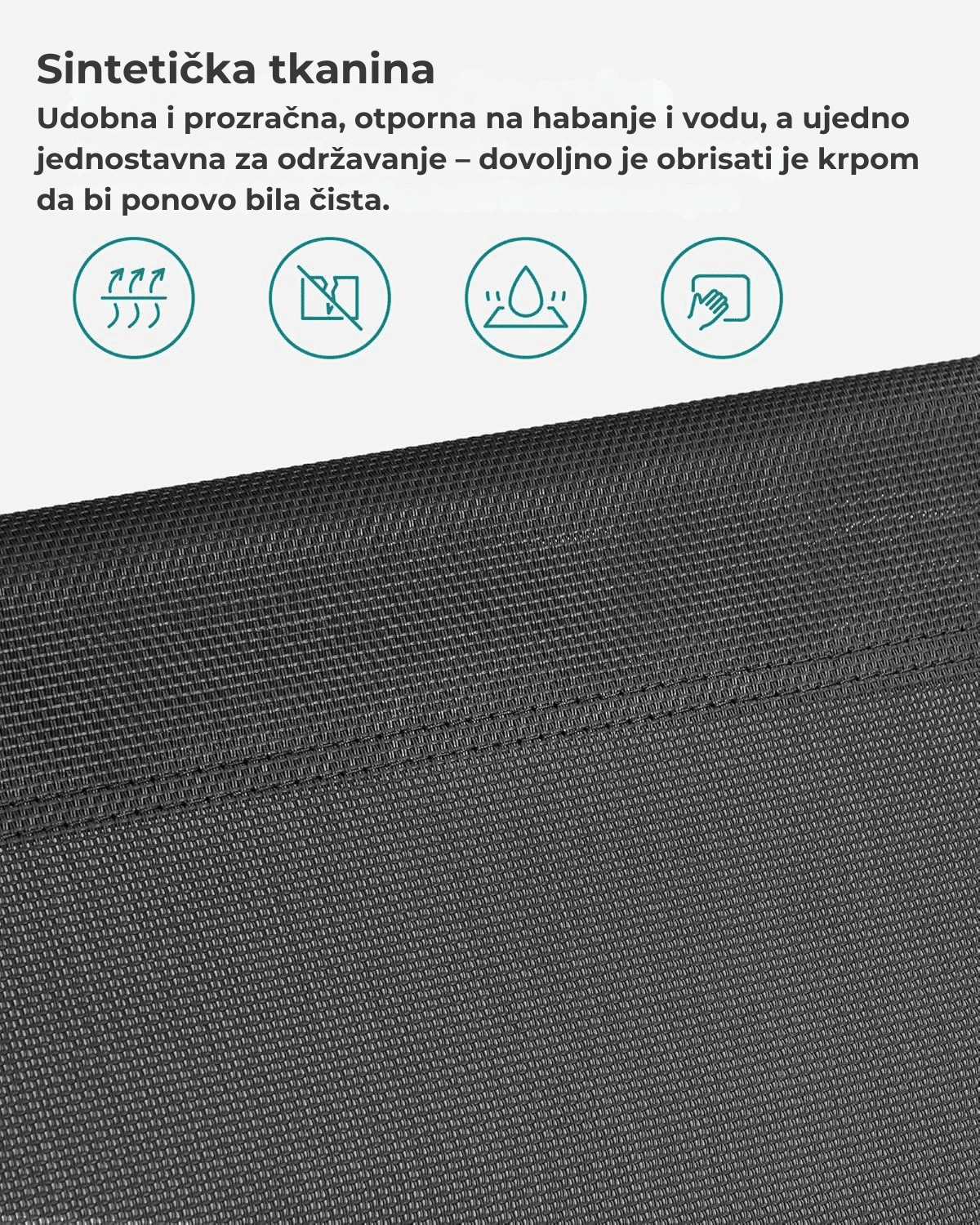 Zaboravite na nestabilne stolice. Ova baštenska ležaljka izrađena je od čvrstog gvozdenog okvira i UV-otporne sintetičke tkanine, što joj omogućava nosivost do 150 kg. Ojačani spojevi dodatno povećavaju stabilnost, pa možete bezbrižno uživati u sunčanju tokom celog leta.