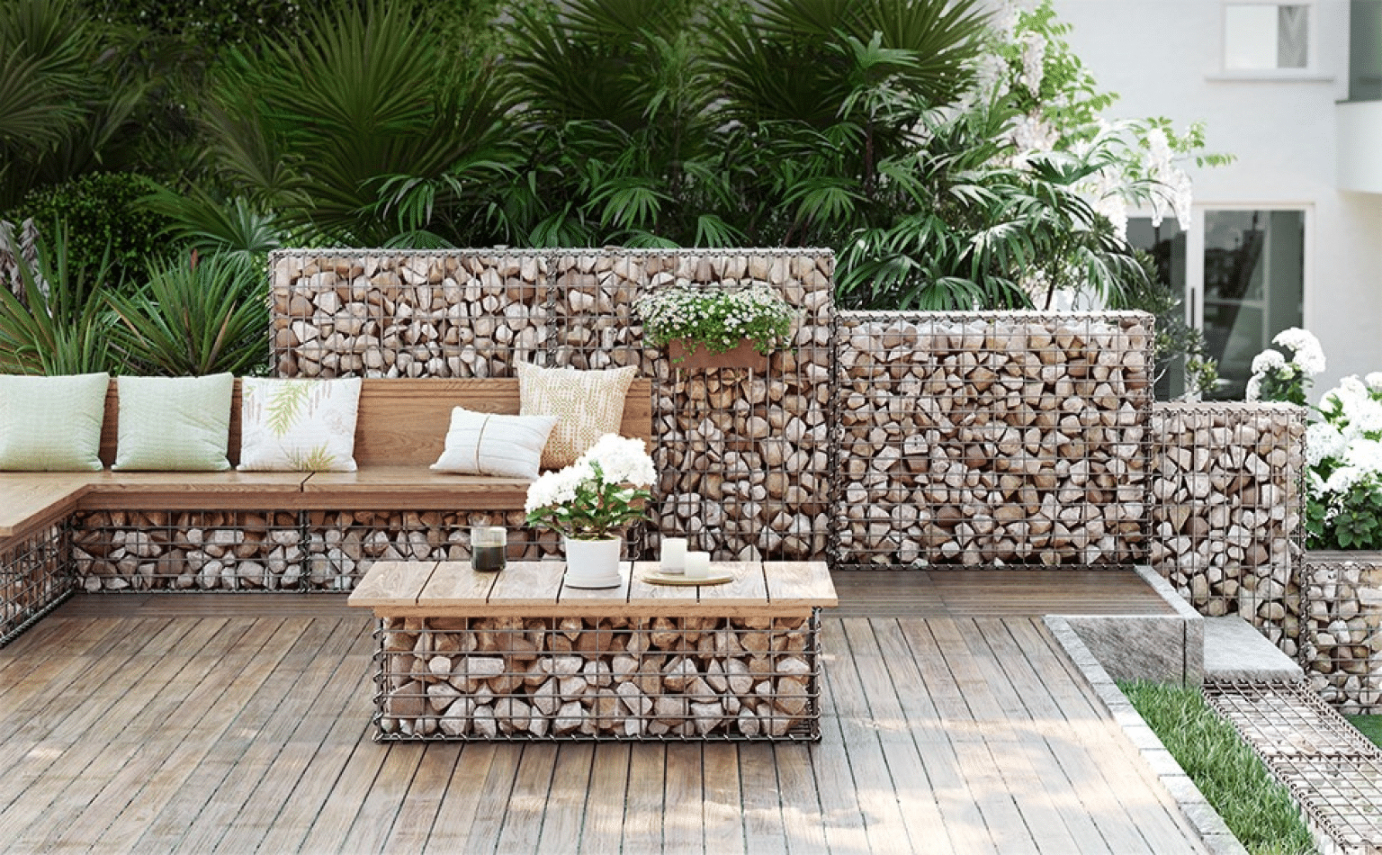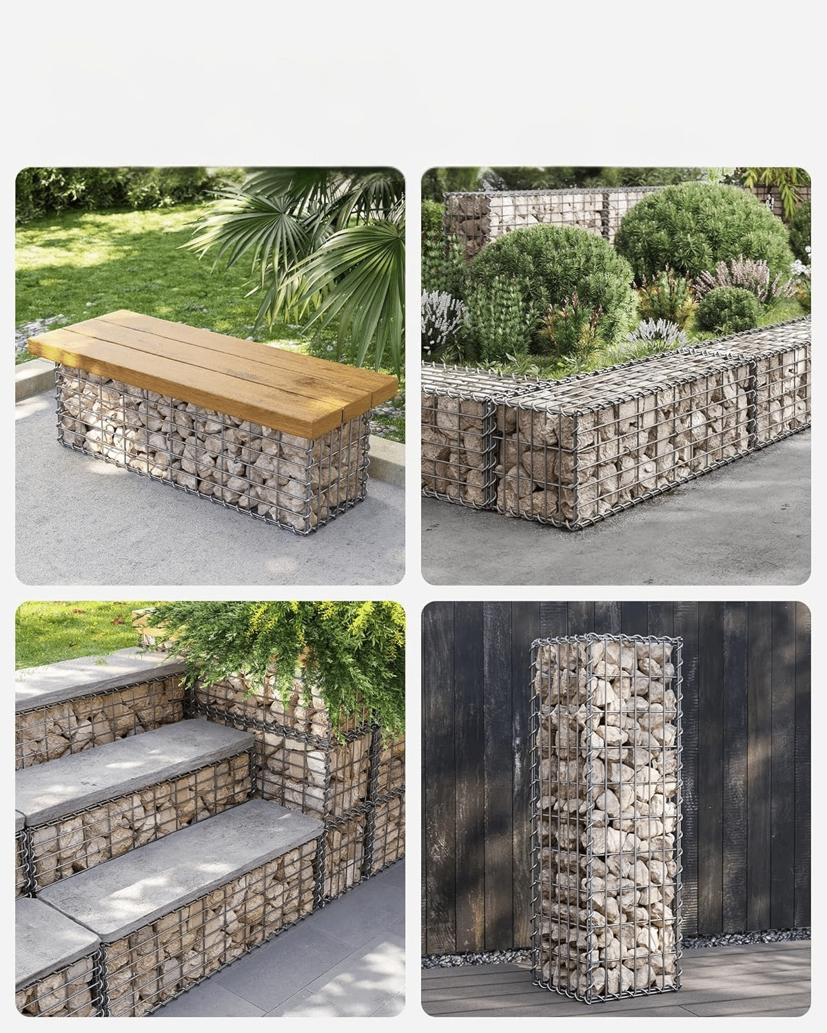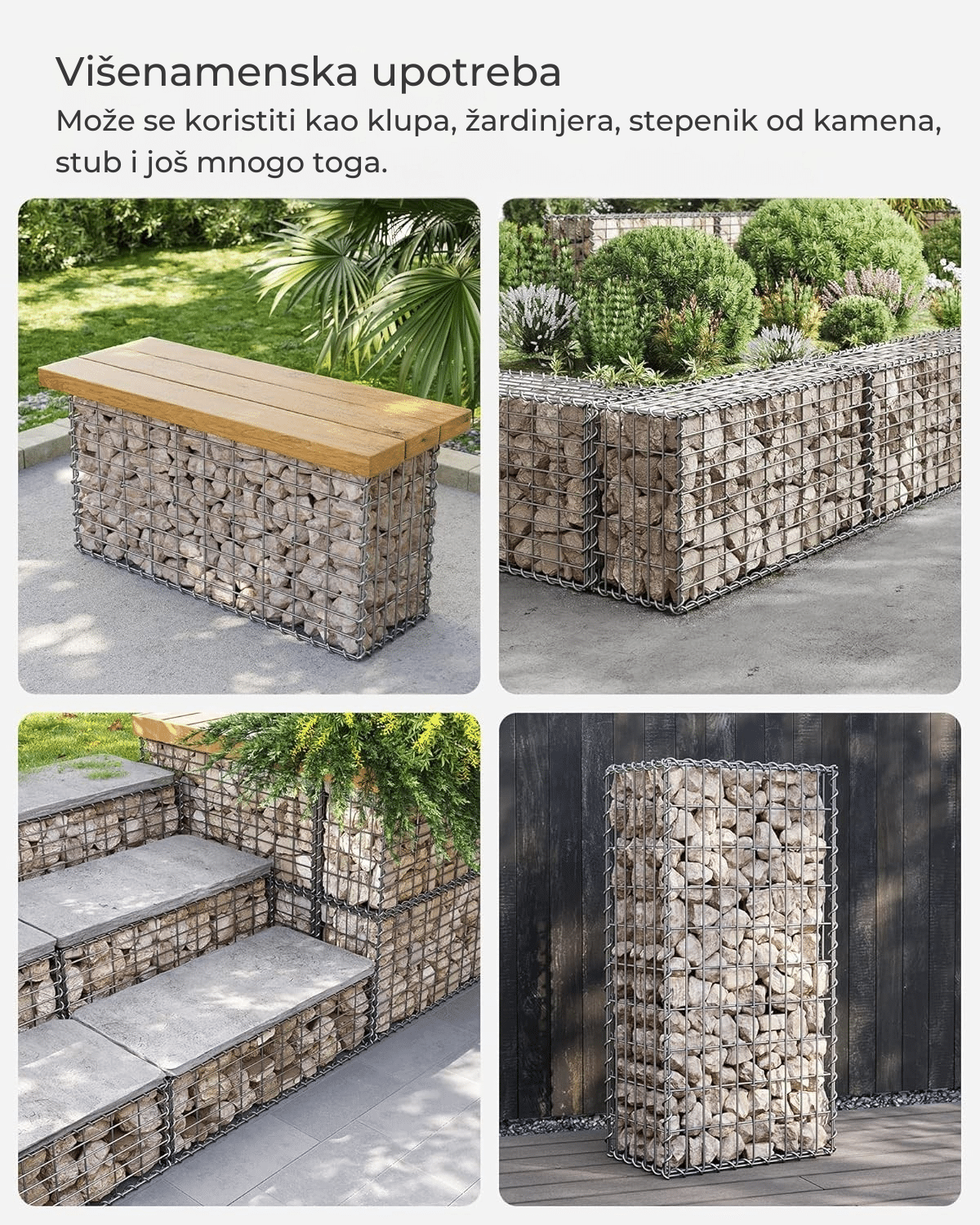 Bilo da želite dekorativni zid, pregradu, klupu ili žardinjeru, ovaj gabion pruža čvrstinu, fleksibilnost i brojne mogućnosti za uređenje spoljašnjeg prostora.