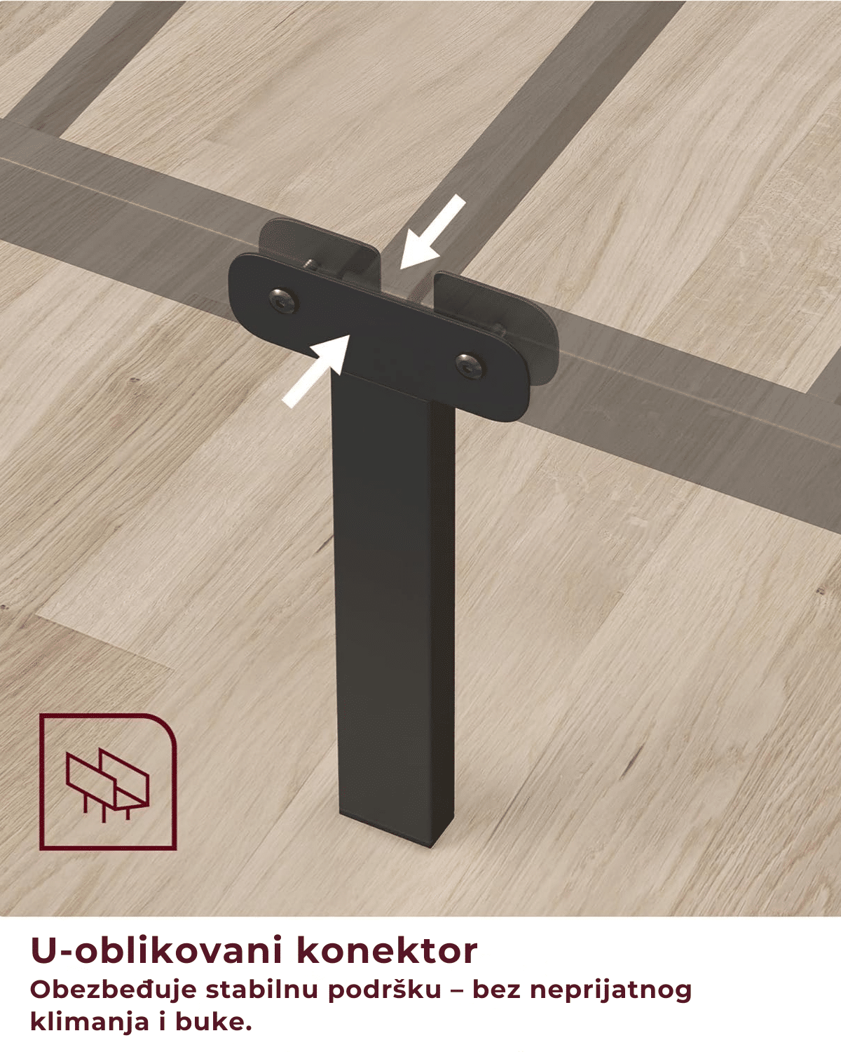 Visokokvalitetne potporne letvice i 6 čvrstih metalnih nogu sa U-oblikovanim konektorima pružaju odličnu stabilnost. Ovaj metalni okvir za krevet može izdržati opterećenje do 150 kg, bez neprijatnog klimanja ili buke tokom spavanja.