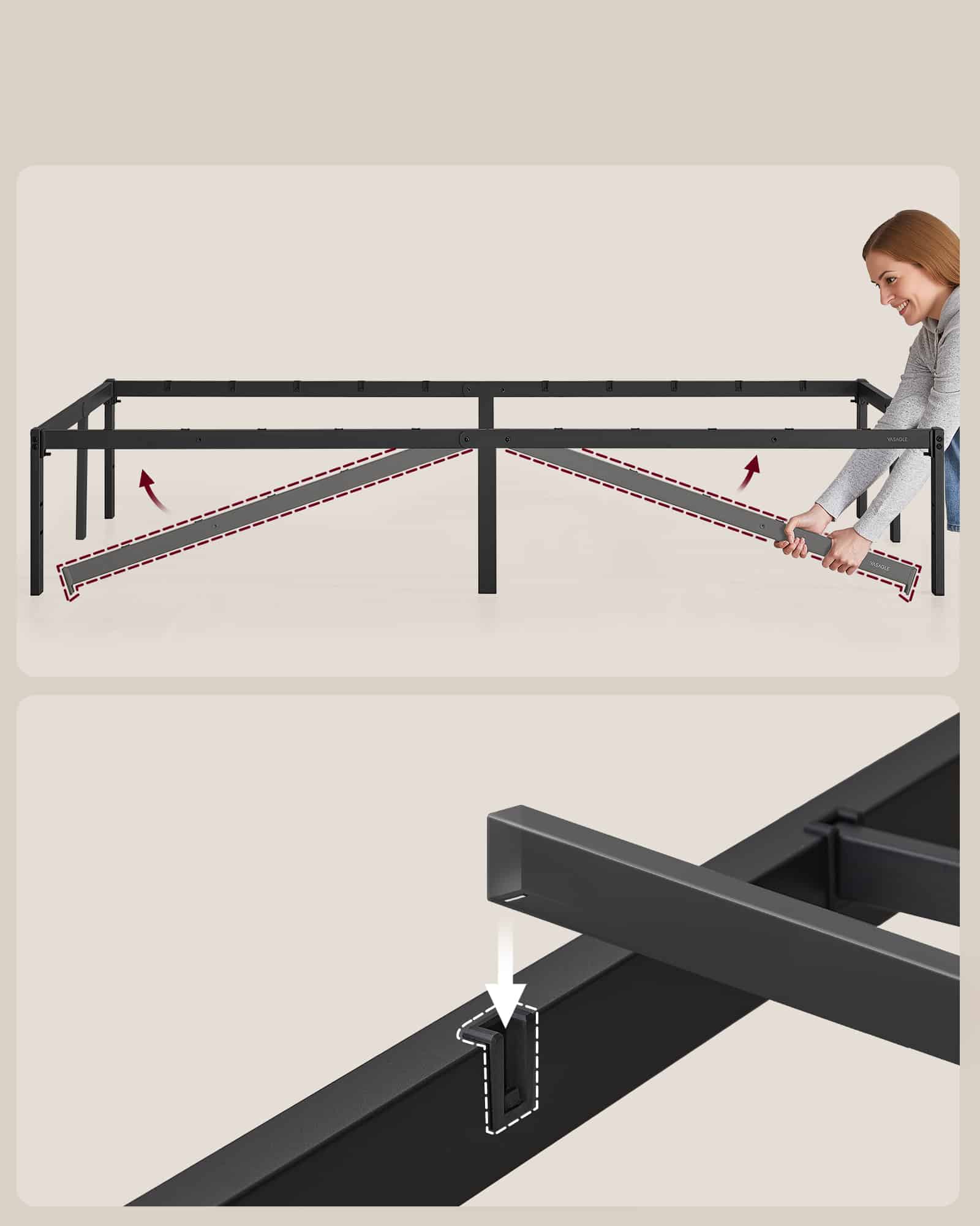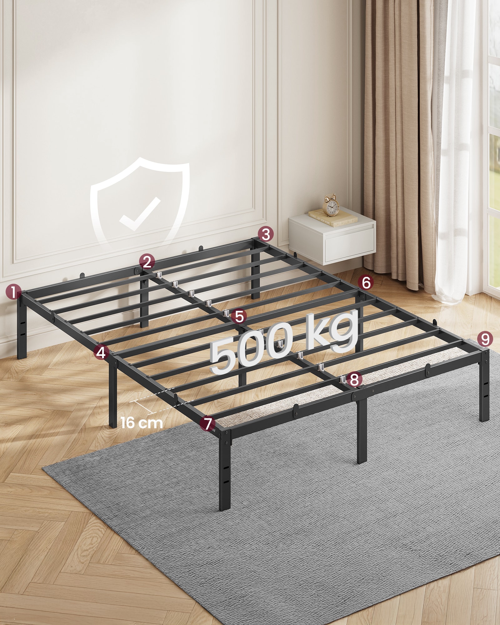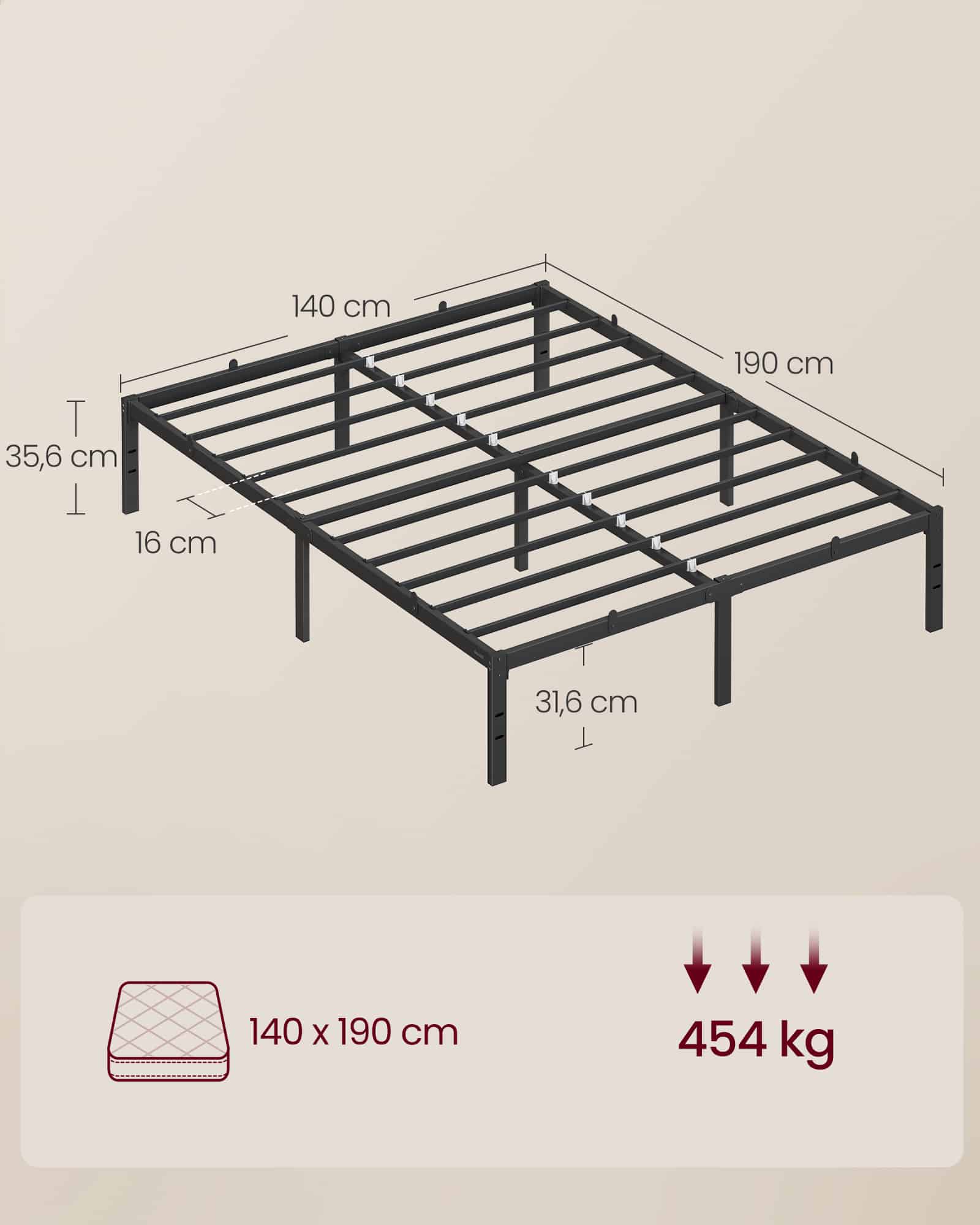 Stabilna i robusna konstrukcija – Zahvaljujući čvrstim metalnim cevima, 9 nogica i snažnim letvicama, okvir je izuzetno stabilan i može da izdrži opterećenje do 454 kg.