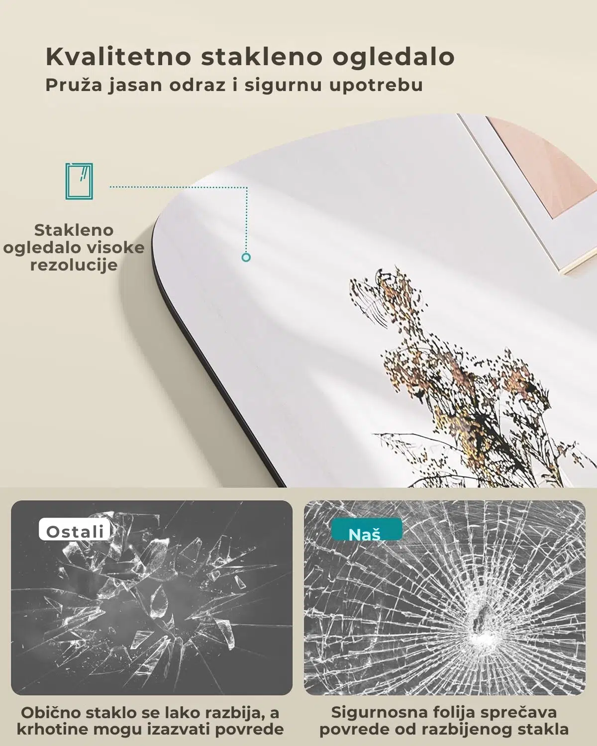 Zaobljeni pravougaoni okvir donosi suptilnu eleganciju i lako se uklapa u spavaću sobu, hodnik, dnevni boravak ili bilo koji drugi prostor.