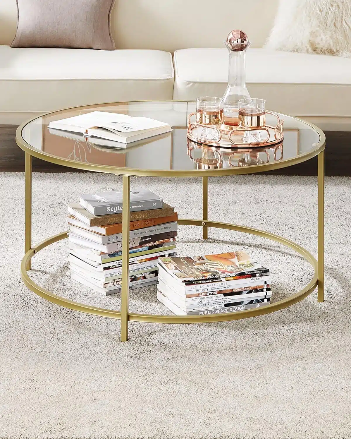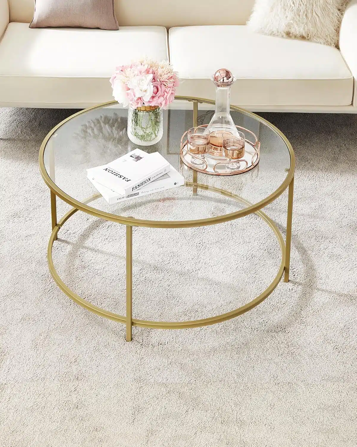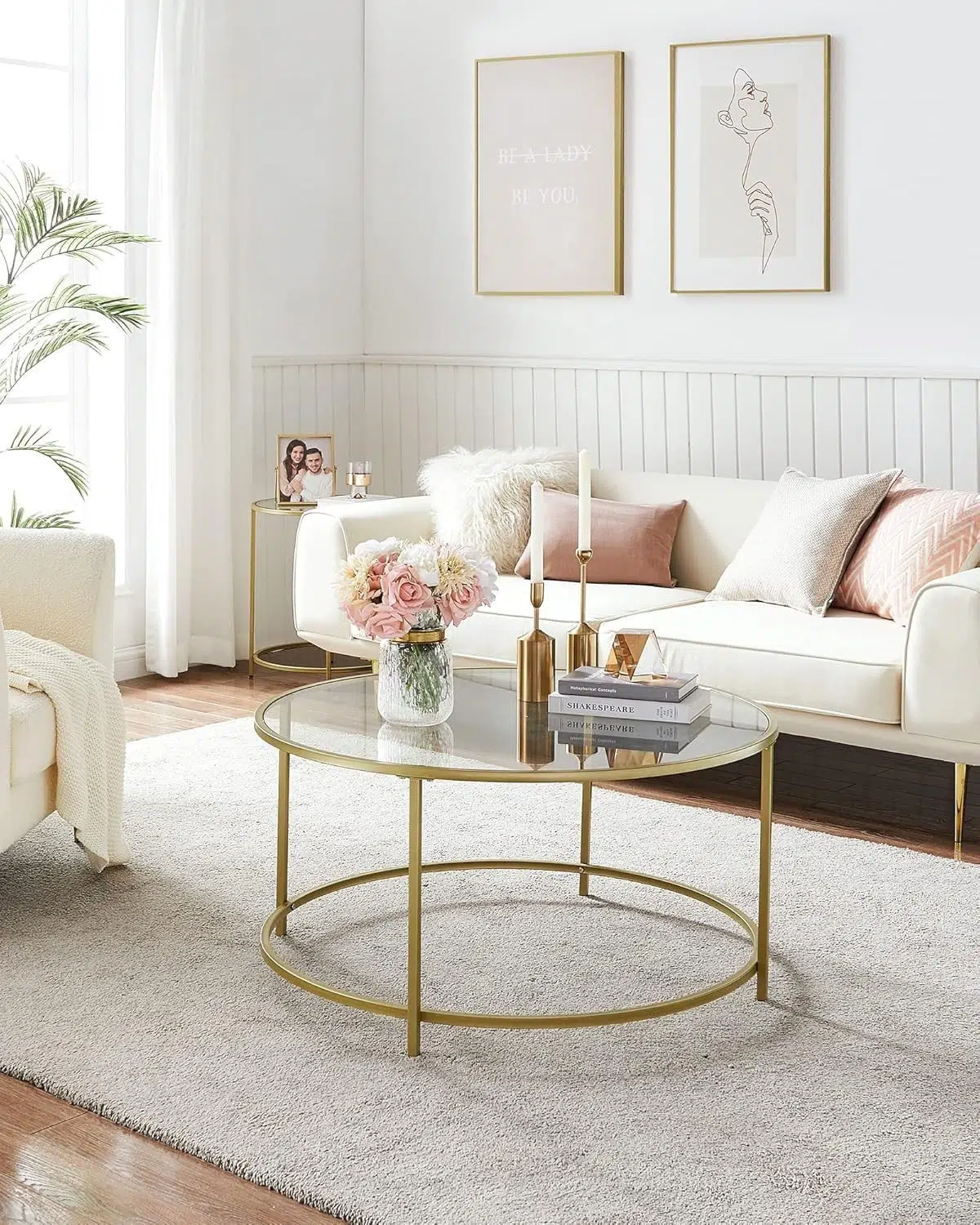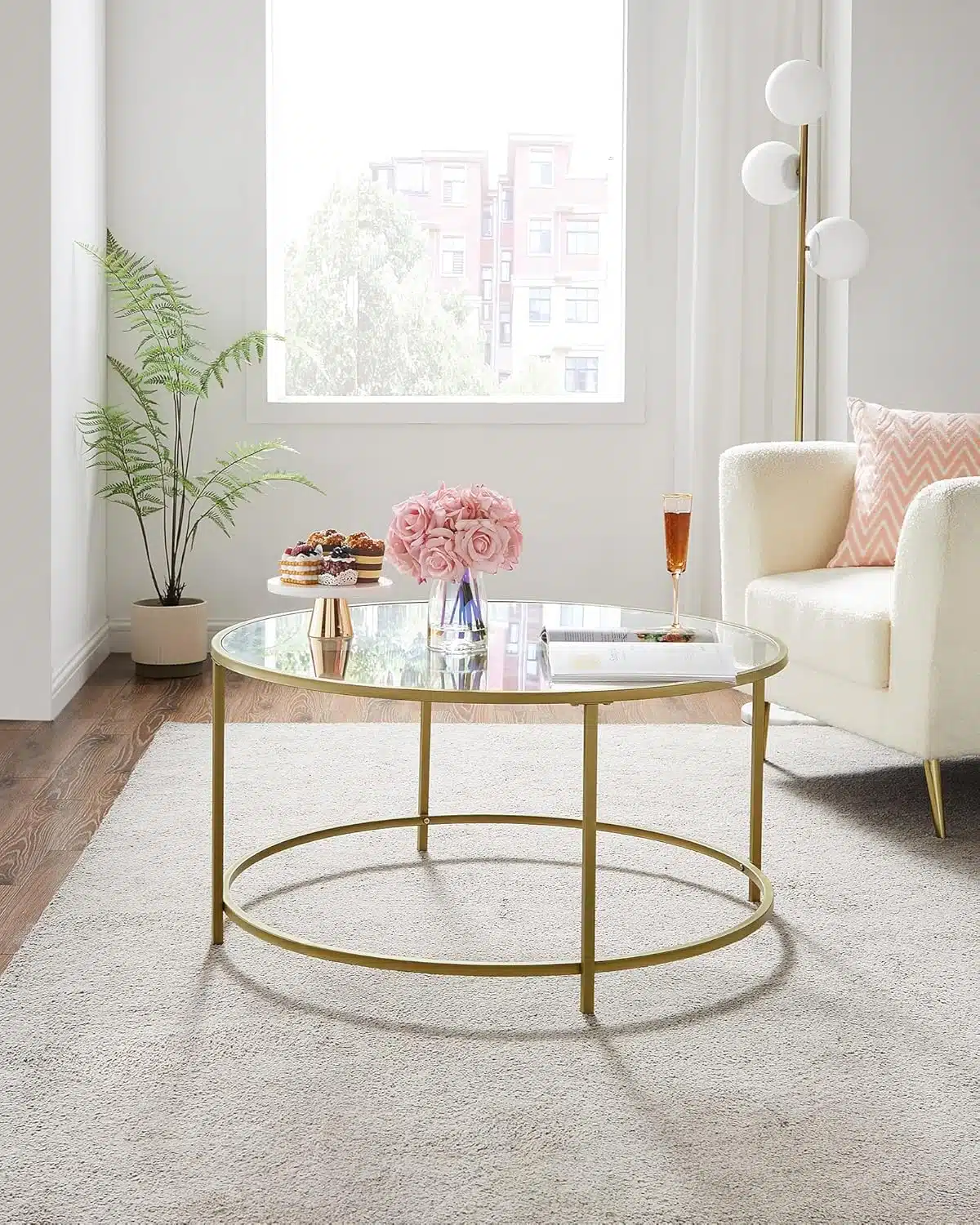 Zaobljen zlatni čelični okvir i kaljena staklena ploča čine savršen spoj elegancije i modernog dizajna. Ovaj sto unosi luksuzan i sofisticiran izgled u svaki prostor, bilo da ga postavite u dnevnu sobu ili pored sofe.