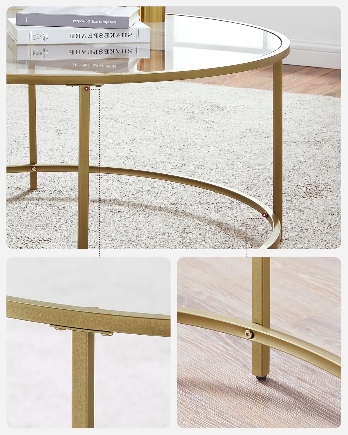 Zaobljen zlatni čelični okvir i kaljena staklena ploča čine savršen spoj elegancije i modernog dizajna. Ovaj sto unosi luksuzan i sofisticiran izgled u svaki prostor, bilo da ga postavite u dnevnu sobu ili pored sofe.