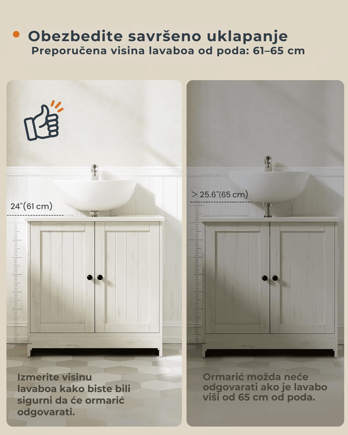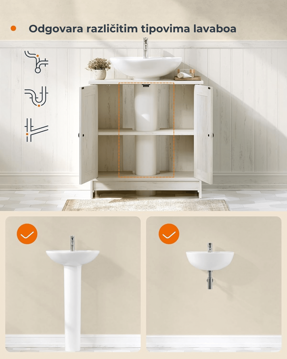Pametan dizajn – otvor na dnu (20 x 23 cm) omogućava postavljanje ispod lavaboa sa ili bez stuba. Preporučuje se merenje lavaboa i instalacija za savršeno uklapanje.