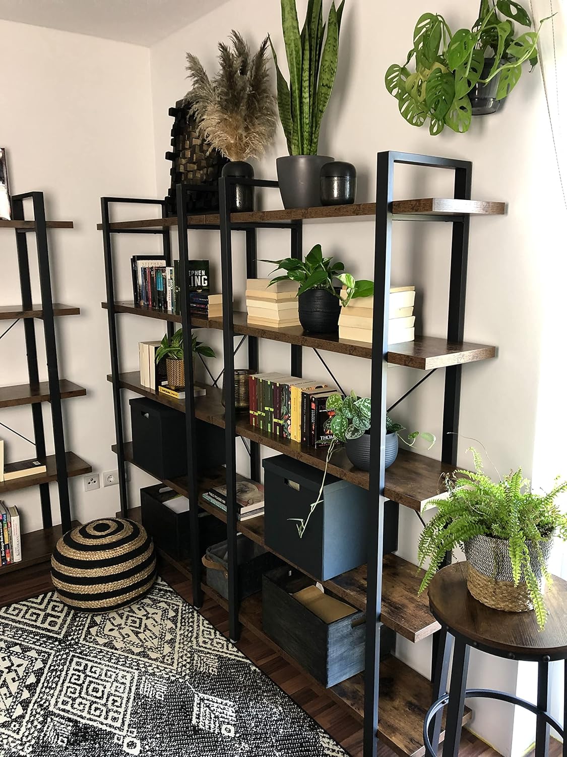 Stvorite prijatnu atmosferu u svom domu – kombinacija crnog čeličnog okvira i rustik braon polica unosi toplinu i stil u svaki prostor. Dodajte omiljene knjige, udobnu fotelju i lampu sa toplim svetlom i dobićete savršen kutak za čitanje bez mnogo truda.