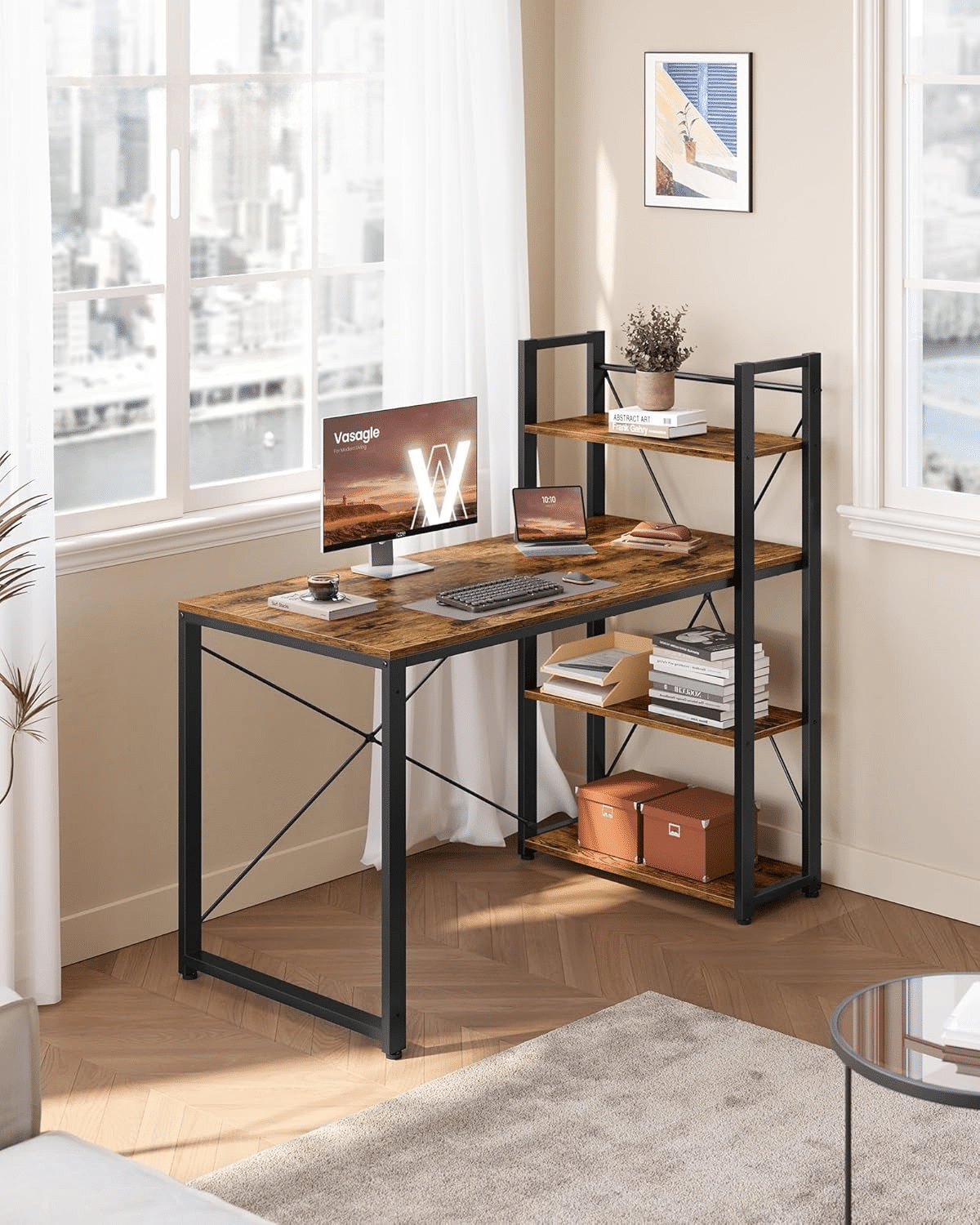 Sa praktičnim policama i prostranom radnom površinom, ovaj sto u industrijskom stilu osmišljen je da vam olakša svakodnevni rad. Zahvaljujući detaljnim uputstvima i dodatnim rezervnim delovima, montaža je brza i jednostavna.