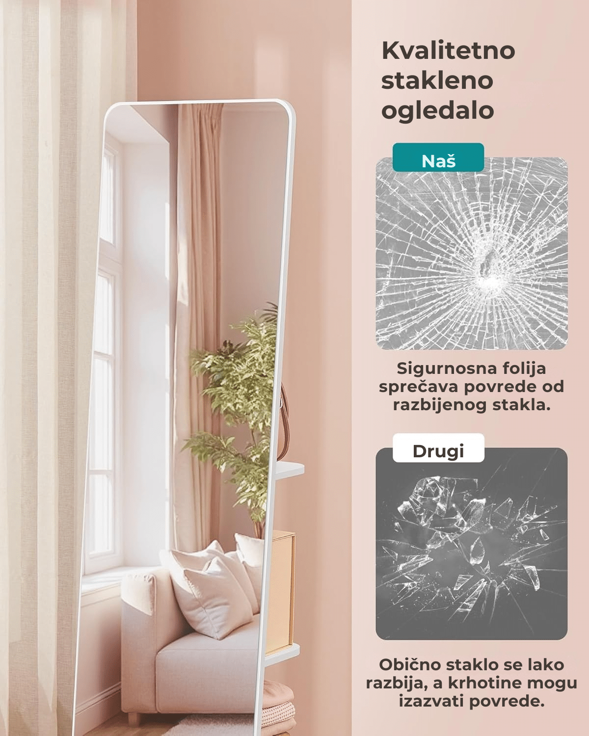 Sa minimalističkim dizajnom i elegantnom belom bojom, ovo podno ogledalo u punoj dužini lako se uklapa u svaki enterijer. Idealno je za spavaću sobu, dnevni boravak, garderober ili hodnik.