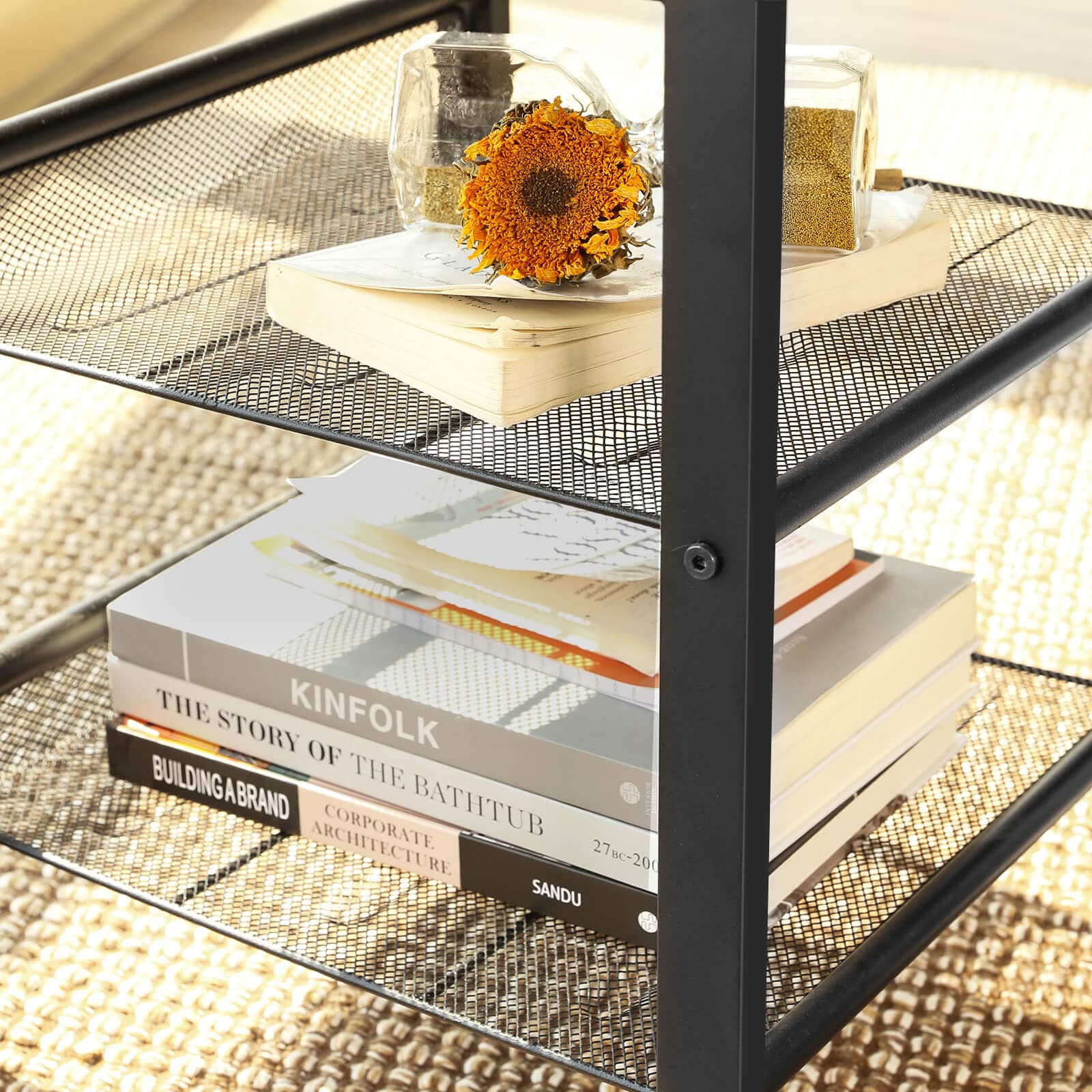 Ravno ili ukošeno – vi birate – Svaki stočić ima dve čvrste mrežaste police koje možete montirati ravno ili blago ukošeno, kako biste pravilno smestili časopise, knjige ili druge sitnice.