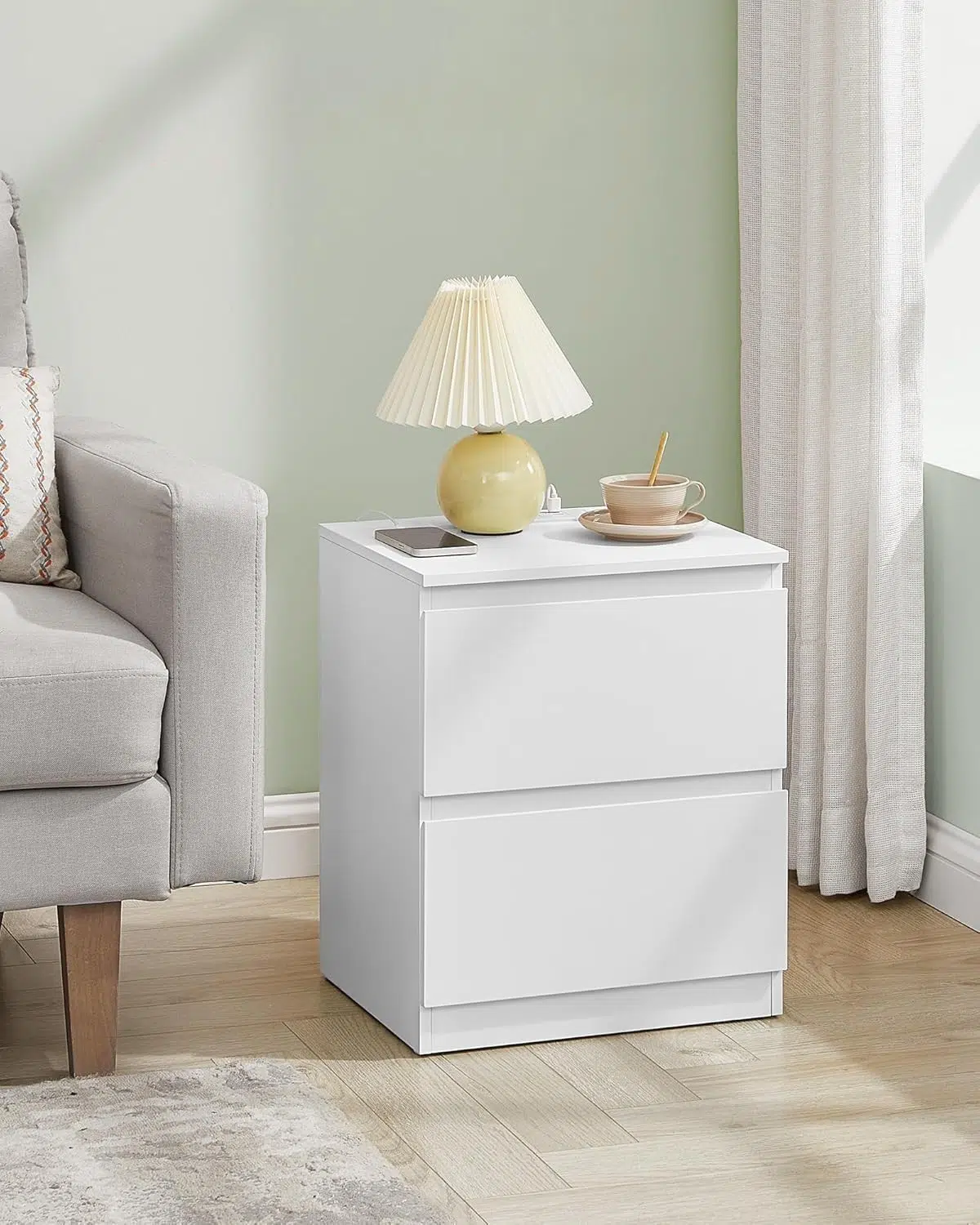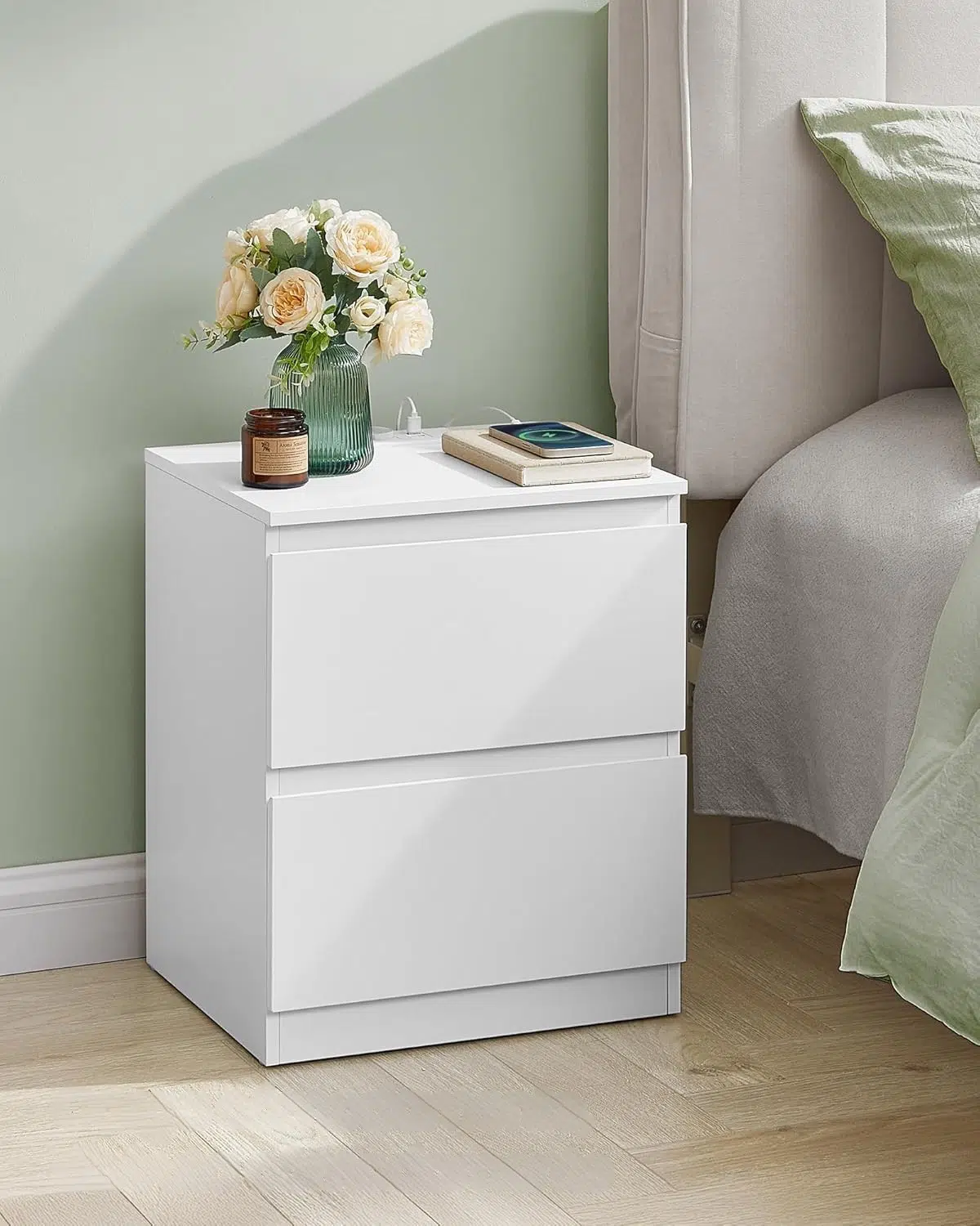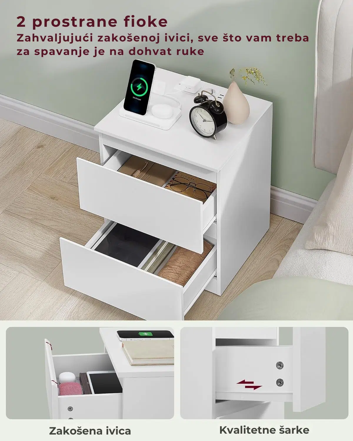 Ovaj set noćnih ormarića nudi veliku gornju površinu i 2 prostrane fioke (30 x 40 x 8,5 cm) za odlaganje ličnih stvari, uz očuvanje privatnosti i uredan izgled spavaće sobe.