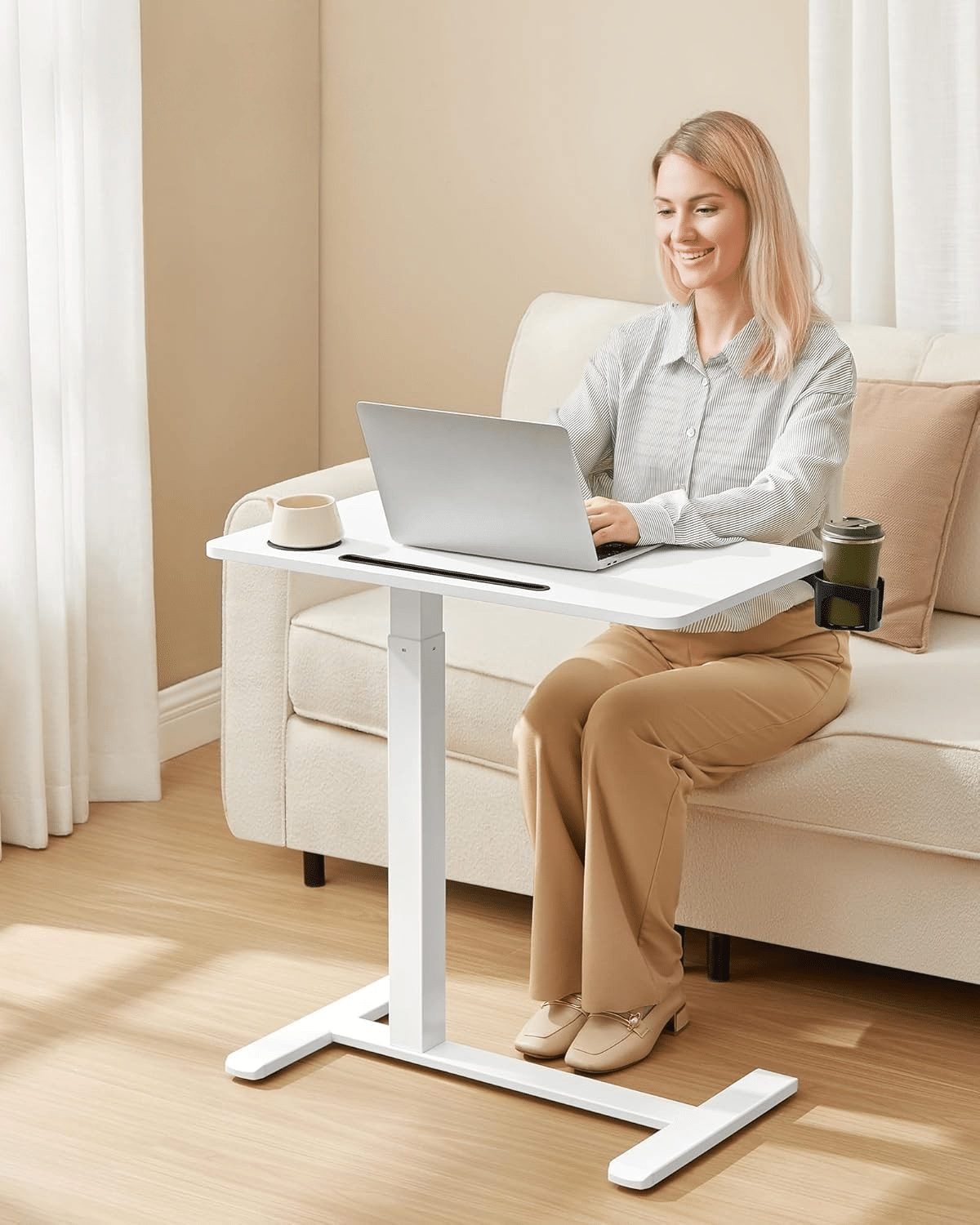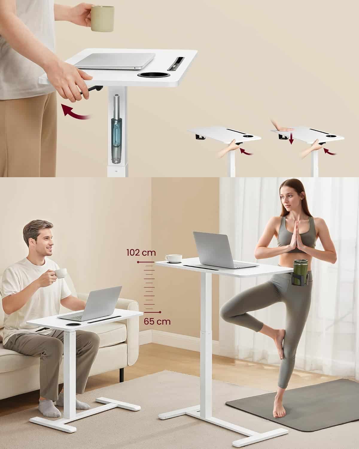 Zahvaljujući kvalitetnom ugrađenom gasnom mehanizmu i praktičnoj ručici, visinu stola možete jednostavno podesiti od 64 do 102 cm, i to samo jednom rukom. Tako sto lako prilagođavate radu na laptopu, čitanju ili gledanju sadržaja.