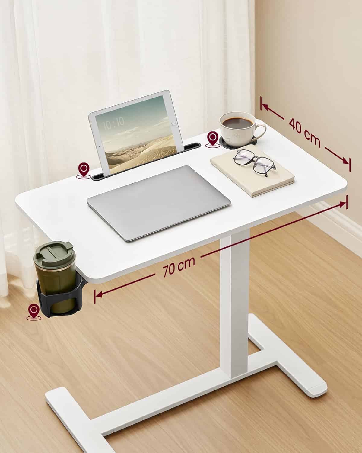Velika radna površina dimenzija 70 x 40 cm pruža dovoljno prostora za laptop i dodatke. Sto je dodatno opremljen ugrađenim držačem za čašu, rotirajućim bočnim držačem za piće i praktičnim slotom za telefon ili tablet, tako da su vam sve stvari uredno organizovane i nadohvat ruke.