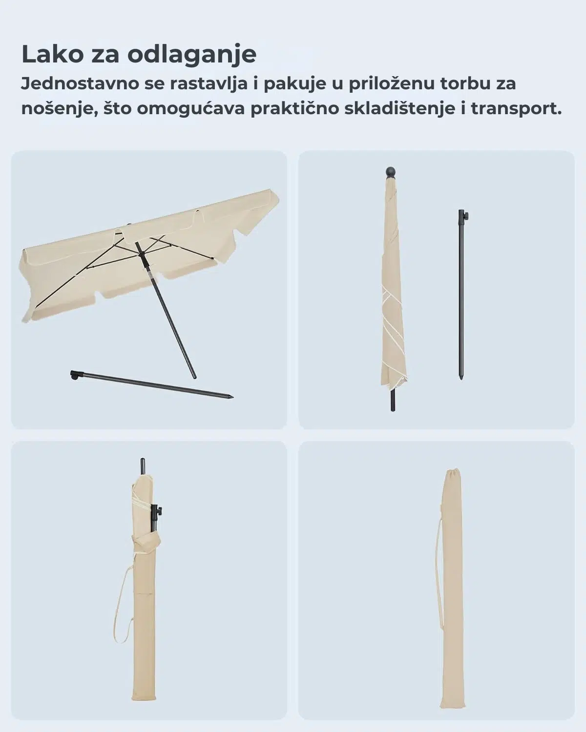 Materijal: metalni stub, poliestersko platno sa PA premazom (160 g/m²)