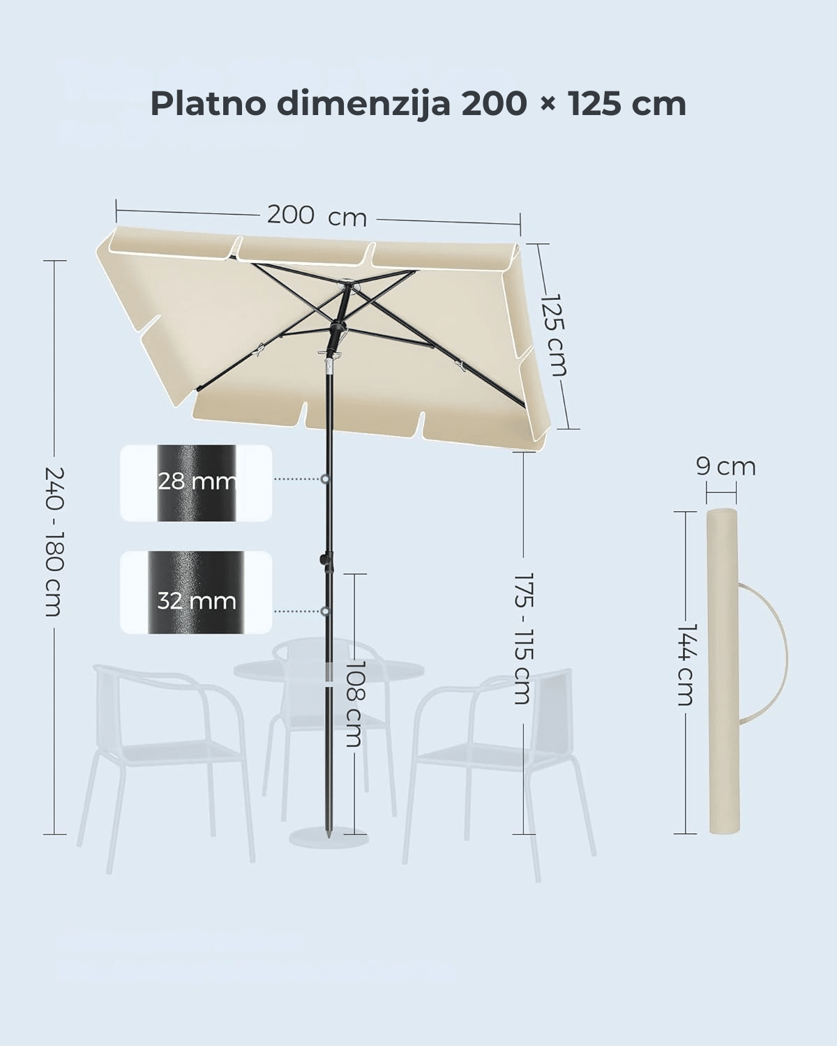 Materijal: metalni stub, poliestersko platno sa PA premazom (160 g/m²)