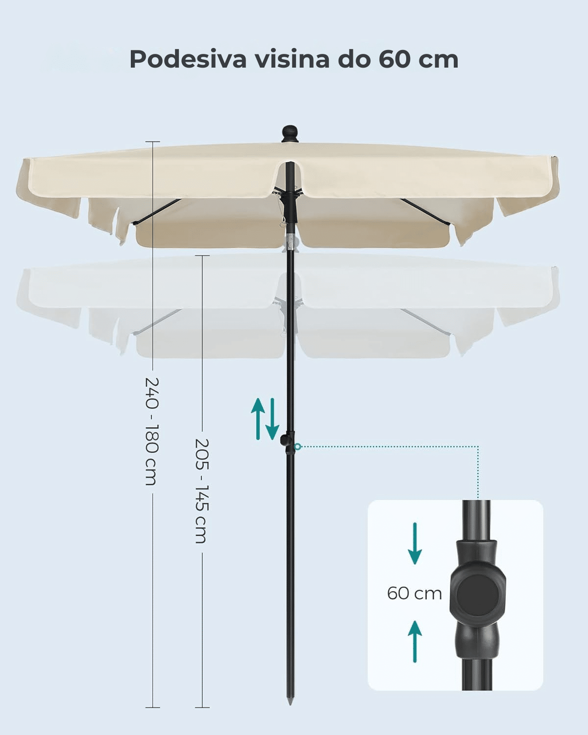 Ne možete da uživate na balkonu zbog jakog sunca? Ulepšajte svoj prostor ovim pravougaonim suncobranom za balkon koji pruža odličnu UPF 50+ zaštitu od UV zračenja zahvaljujući platnu sa PA premazom. Idealan je za zaštitu od sunca tokom toplih letnjih dana.