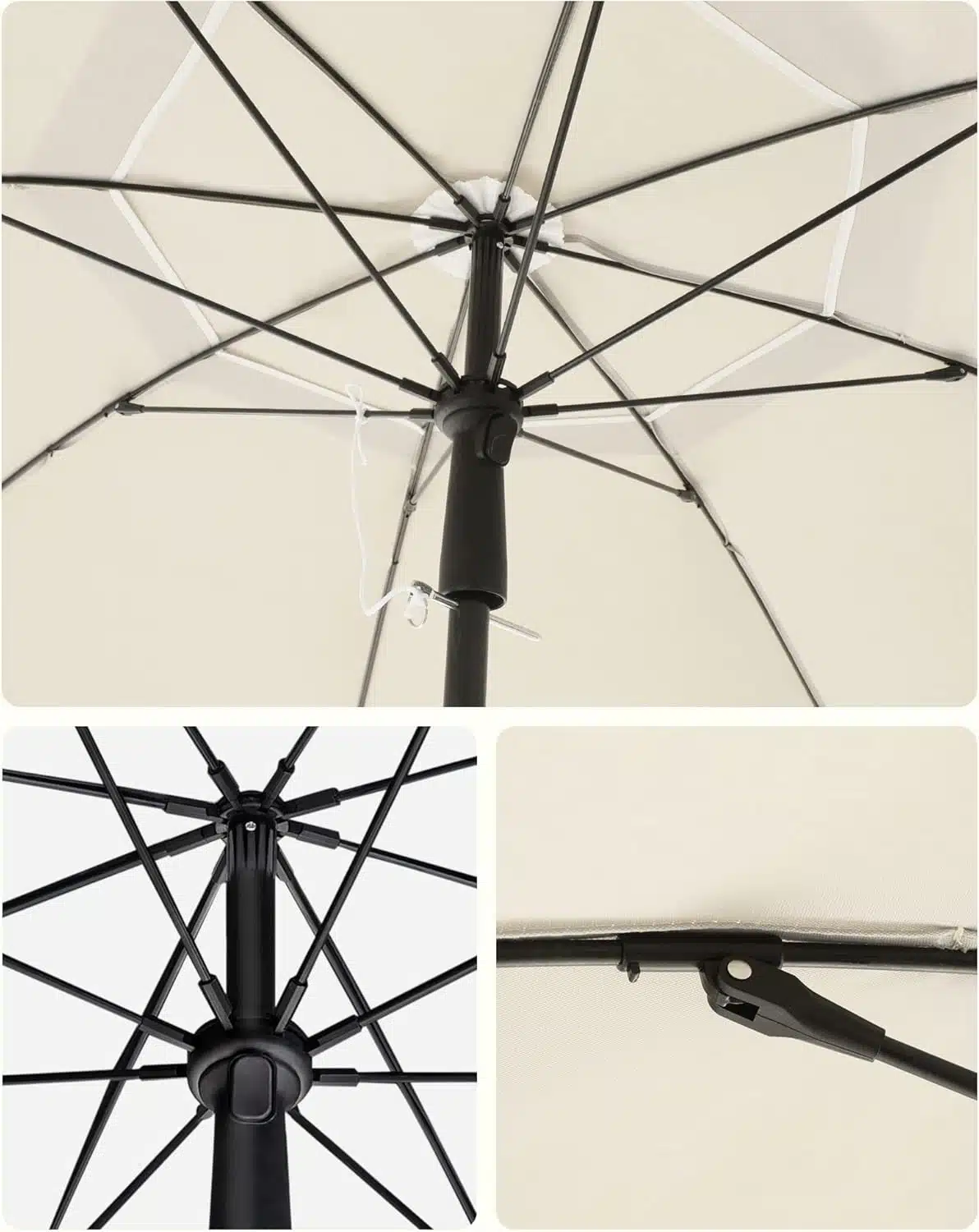 Postavljanje suncobrana traje samo nekoliko trenutaka. Dovoljno je da spojite delove stuba, postavite ga u postolje (nije uključeno), otvorite suncobran i osigurate ga metalnim graničnikom. Za nekoliko sekundi dobićete prijatnu hladovinu na terasi, balkonu ili u dvorištu.