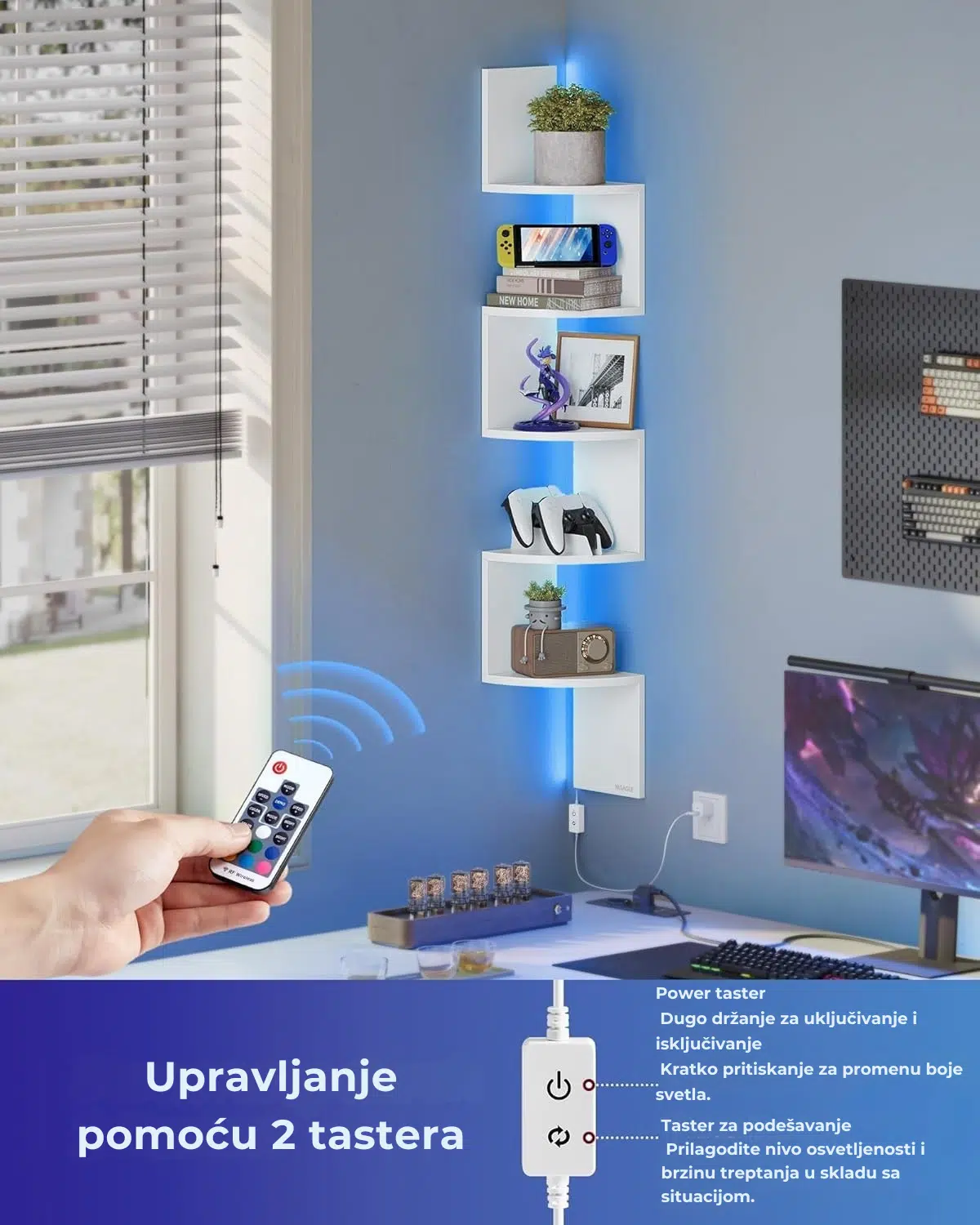 1 x Ugaona zidna polica sa LED svetlom